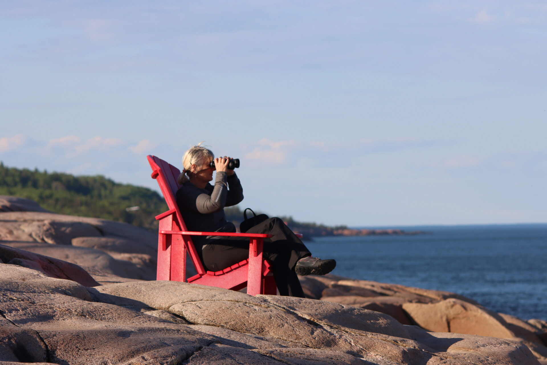 Obwohl die Schranken am Cap-de-Bon-Désir Interpretations- und Beobachtungszentrum noch geschlossen sind – eben noch „out of Season“ – lassen wir uns den Besuch nicht entgehen. Gemeinsam mit anderen Naturbegeisterten spazieren wir durch den Wald bis vor zu den markanten Felsen am Strand. Dieser Ort gilt als einer der besten Aussichtspunkte für Walbeobachtungen, und wir werden nicht enttäuscht: Verschiedene Walarten und Robben ziehen direkt vor unseren Augen durch das Wasser. Es ist ein zutiefst magischer Moment, hier zu sitzen und die Ruhe sowie die ungebändigte Natur zu geniessen.