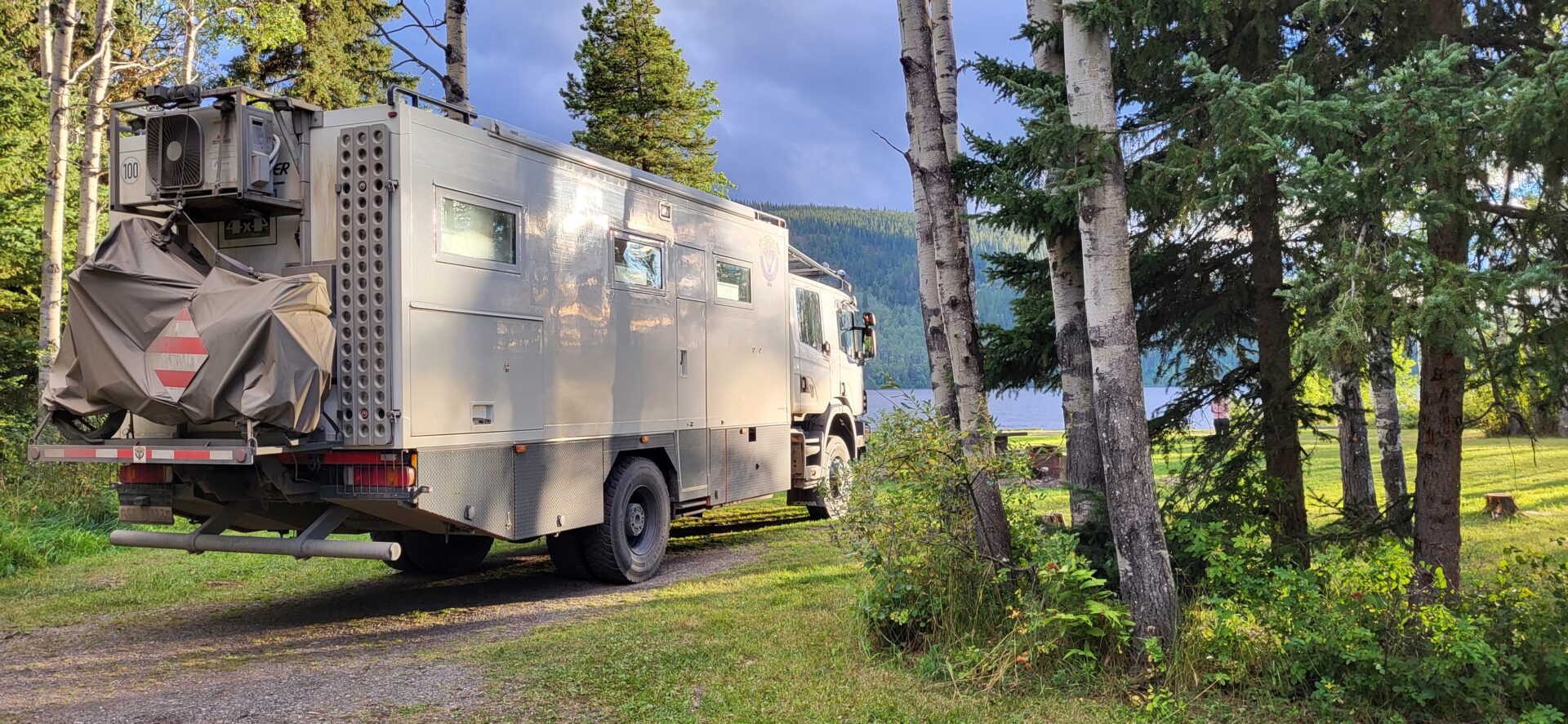 An einem Aussichtspunkt hält ein Pickup neben uns an. Ein Ehepaar der First Nations fragt uns ausgiebig aus, was uns in ihr Land führt. Wir spüren ihre tiefe Besorgnis um ihren Lebensraum und hören aufmerksam zu, als sie von den Problemen mit illegalen Jägern erzählen. Sie raten uns eindringlich von Fahrten auf dem unberechenbaren Fluss ab, der schon vielen Menschen das Leben gekostet hat. Die rund 400 Einwohner von Telegraph Creek gehören grösstenteils den Tahltan First Nations an und bemühen sich bis heute, ihre kulturellen Traditionen zu bewahren. Die Strasse endet schliesslich an einem alten Friedhof mitten im Wald – ein absolut einsames und beeindruckendes Highlight unserer bisherigen Reise.