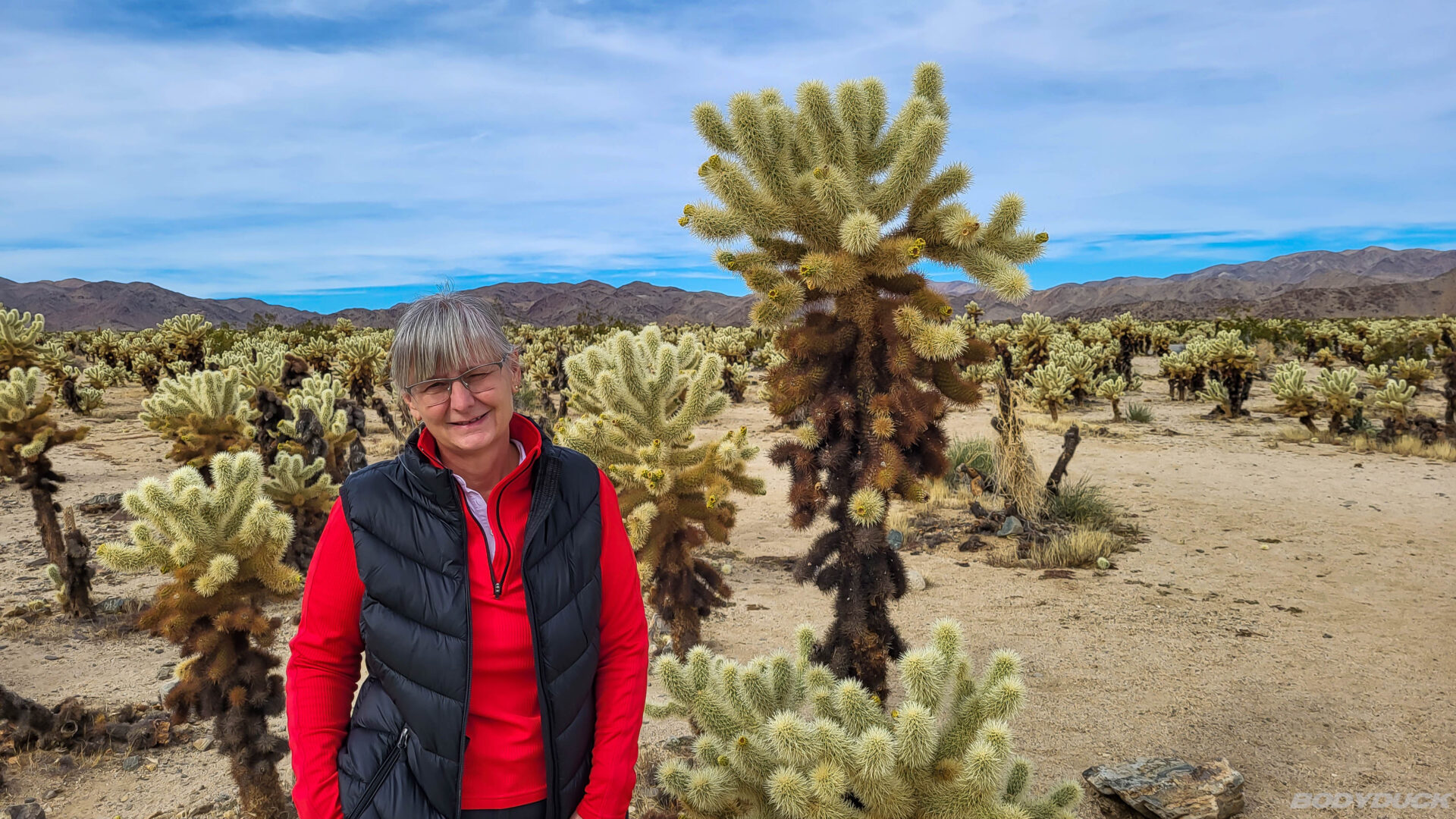Ein weiteres Highlight ist der Cholla Cactus Garden, etwa 20 Kilometer südlich des nördlichen Eingangs. Auf fast 10 Hektar erstreckt sich hier eine dichte Ansammlung von Teddybär-Cholla-Kakteen. Trotz ihres niedlichen Namens ist Vorsicht geboten, doch im Gegenlicht wirken die stacheligen Gewächse fast wie leuchtende Wesen.