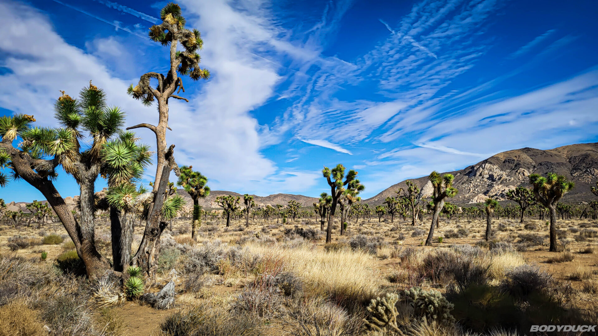 Drei Meilen vor dem Joshua Tree National Park legen wir einen produktiven Zwischenstopp ein. Wir verbringen zwei Tage auf BLM-Land, nutzen die Abgeschiedenheit für unser Home-Office und erledigen allgemeine Büroarbeiten. Es ist ein Privileg, den Laptop mit Blick auf die weite Wüste aufzuklappen, bevor wir uns wieder ganz der Natur widmen.