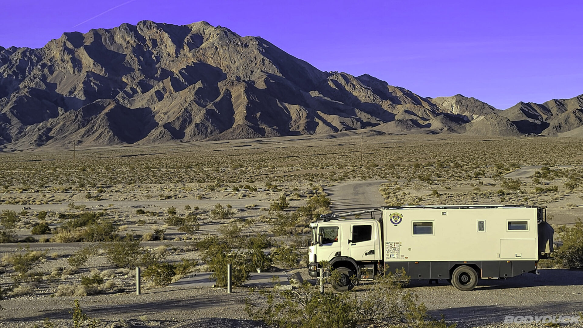 Nachdem die schriftliche Bestätigung der Reservierung vom Oasis RV Resort endlich eingetroffen ist, verlassen wir die Stadt und begeben uns auf den Weg in Richtung Death Valley National Park. Wir wissen, dass uns dort extreme Bedingungen erwarten. Aufgrund der massiven Sturzflutschäden, die der Hurrikan Hilary im letzten August verursacht hat, sind viele Strassen im Park weiterhin gesperrt. Zudem stellt uns unsere Fahrzeuggrösse vor Herausforderungen, da der Zugang mit Bodyduck nicht überall möglich ist. Dennoch lassen wir uns auf dieses Abenteuer ein.