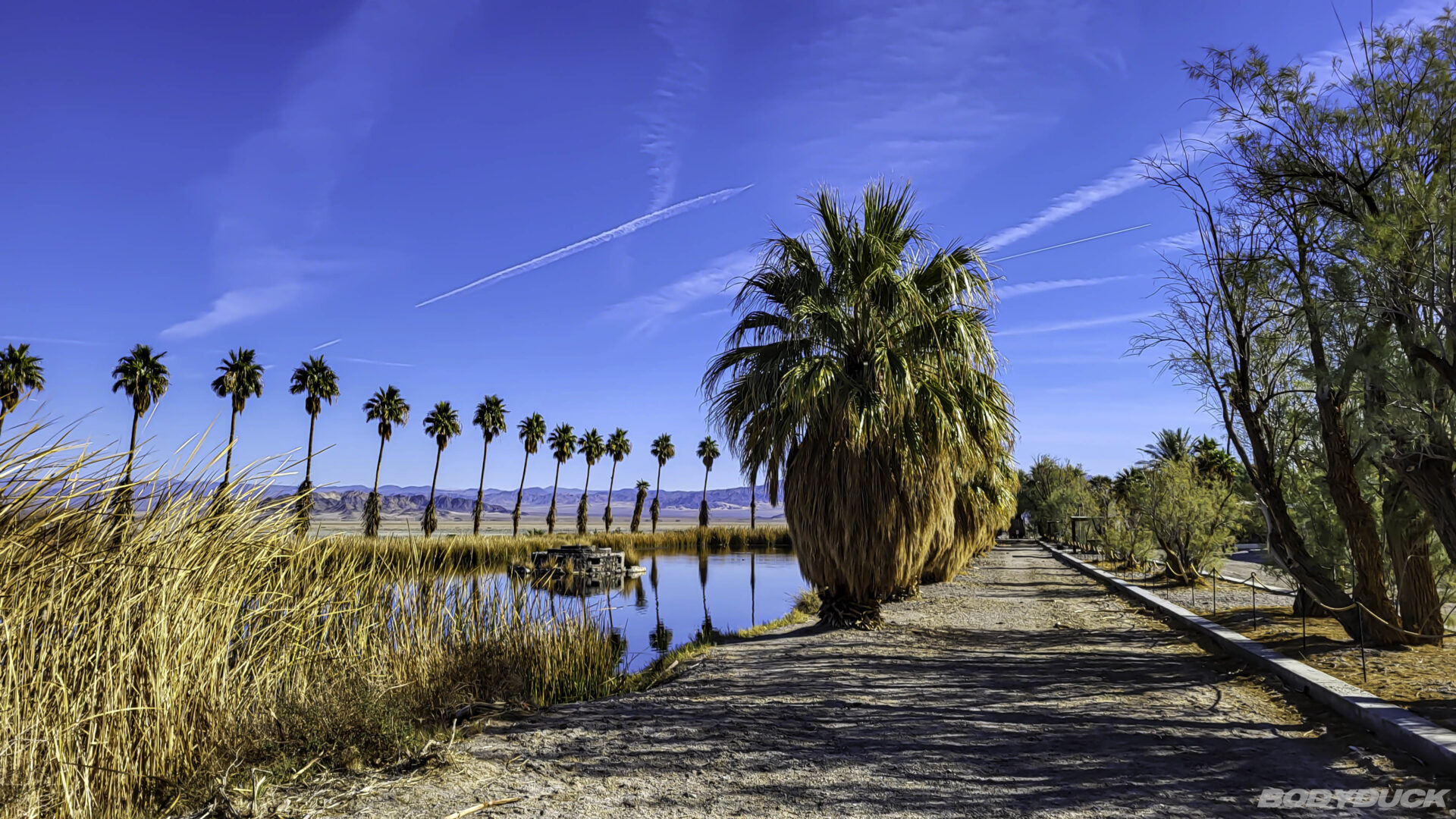 Die Geschichte von Zzyzx ist eng mit der schillernden Persönlichkeit Springers verknüpft. Er nutzt das staatliche Land über Jahrzehnte für sein privates Imperium, bis die Regierung das Gebiet 1974 schliesslich zurückfordert. Wir wandern durch die Anlage und bestaunen die erhaltenen Gebäude und Palmenalleen, die in der kargen Umgebung fast wie eine Fata Morgana wirken. Es ist ein Ort voller Kontraste: auf der einen Seite die bizarre Geschichte eines selbsternannten Wunderheilers, auf der anderen die moderne, ernsthafte Wissenschaft von heute.