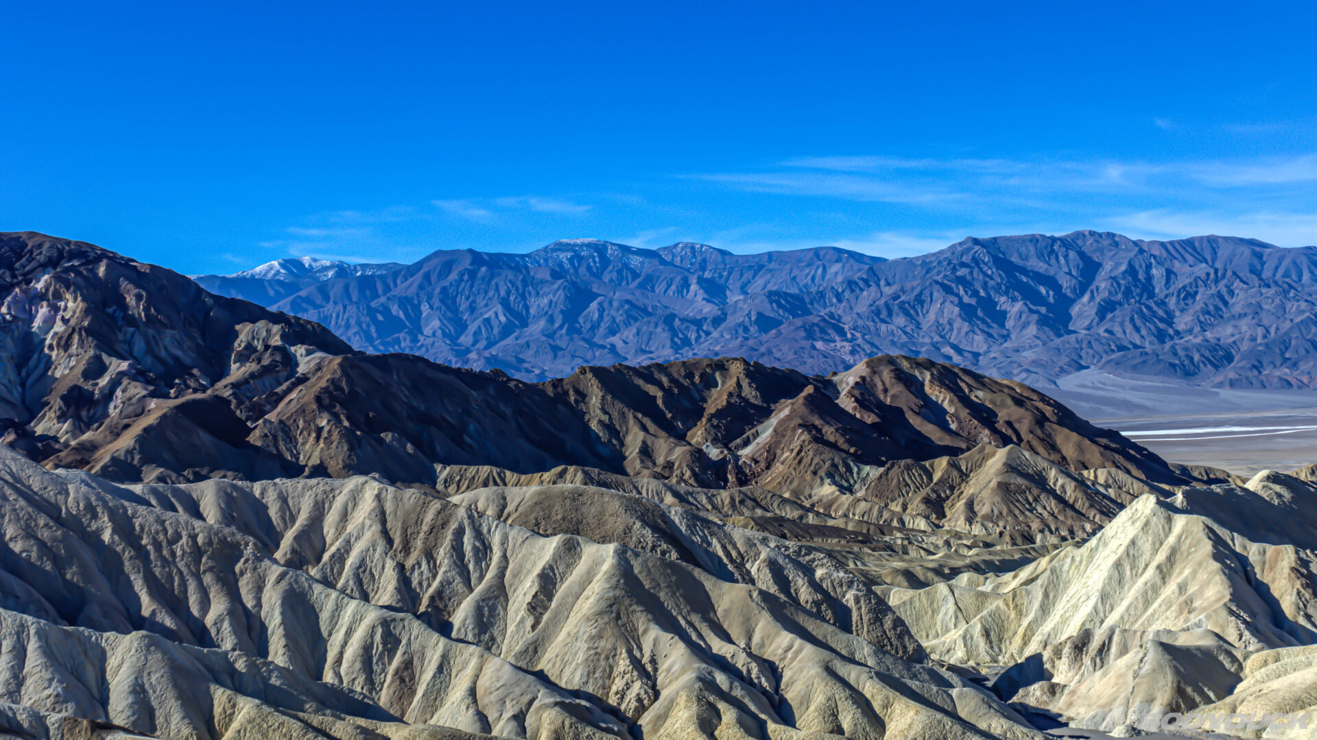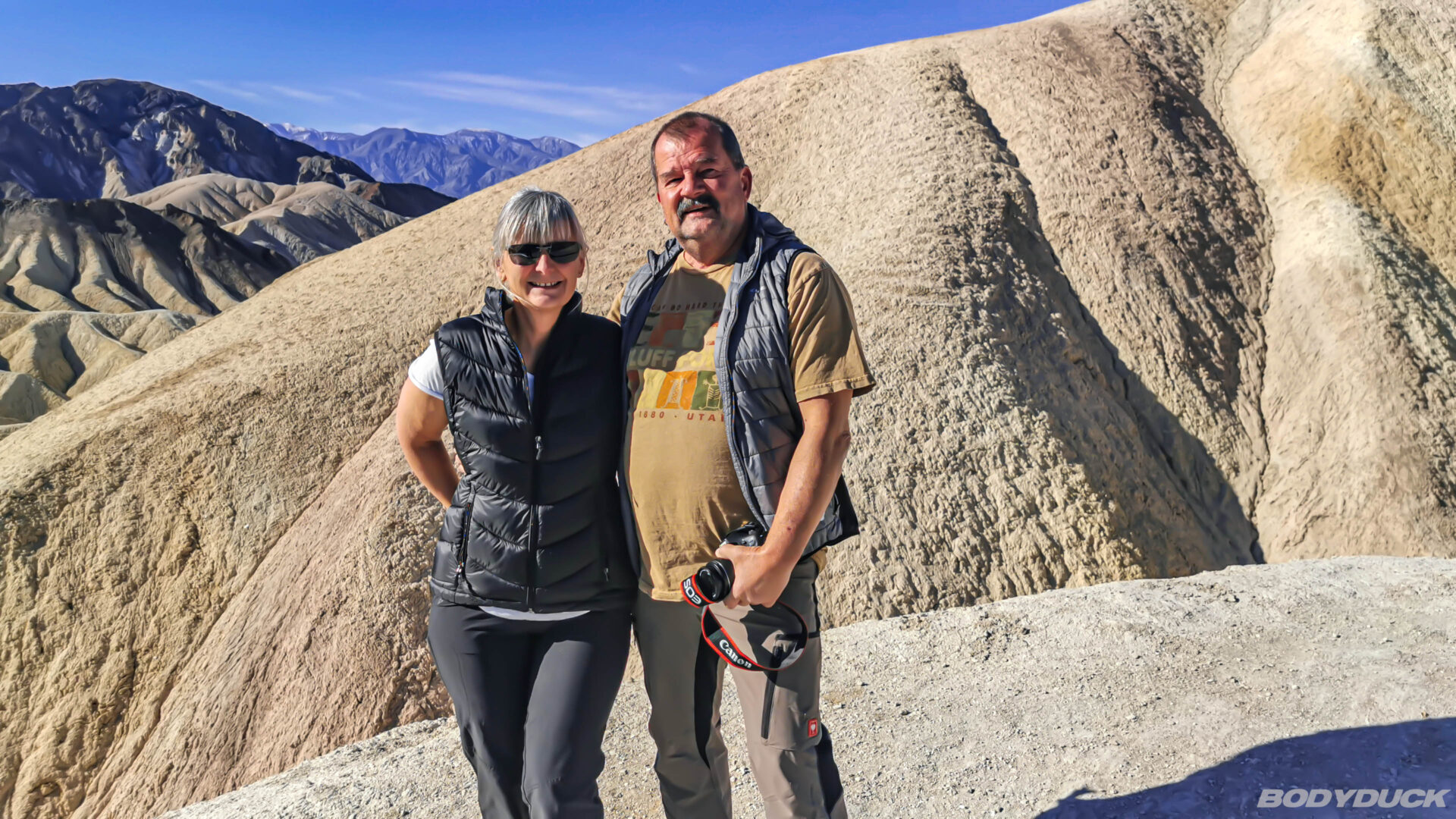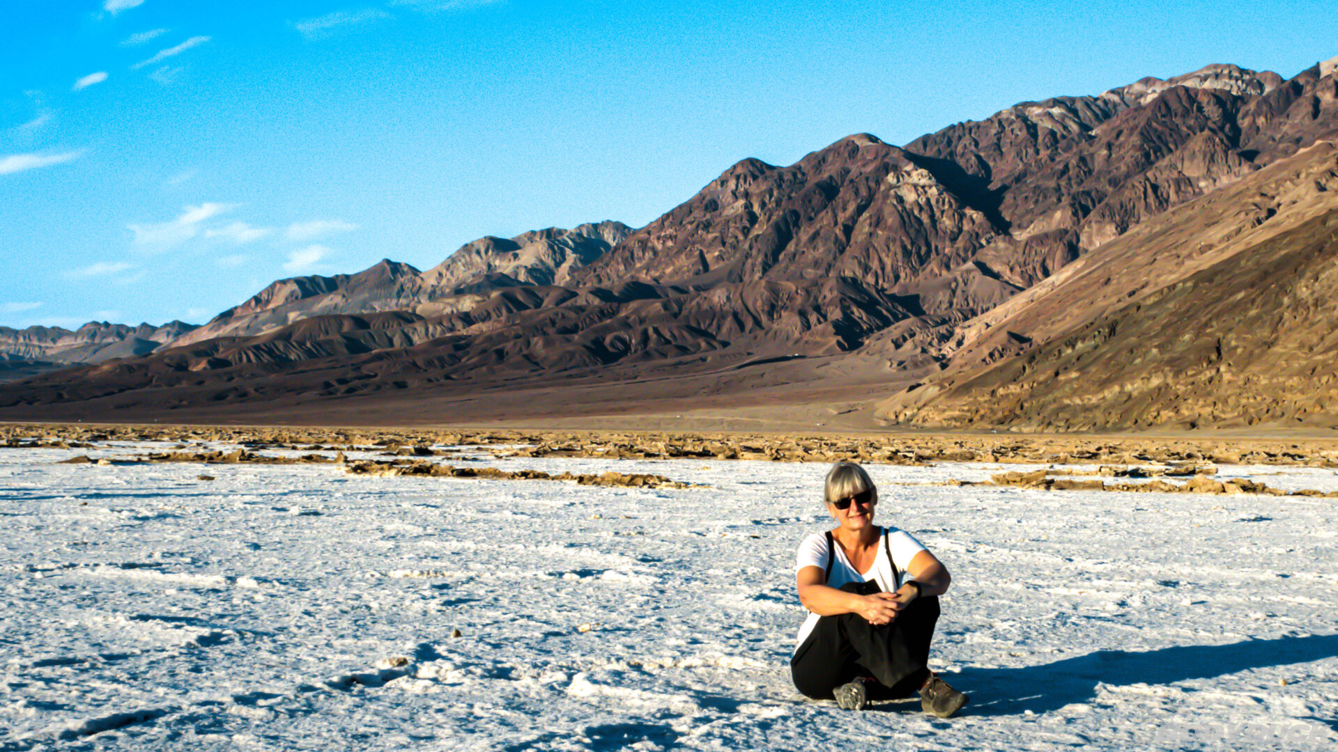 Das „Tal des Todes“ beeindruckt uns durch seine spektakuläre und farbenfrohe Wüstenlandschaft. Auf einer Fläche von 3,3 Millionen Hektar umfasst der Park riesige Sanddünen, unter dem Meeresspiegel liegende Salzebenen, geheimnisvolle „singende Felsen“ und farbenfrohe Sandsteinschluchten. Es ist zweifellos der heisseste und trockenste Ort in Amerika. Besonders faszinierend ist der extreme Höhenunterschied: Während wir im Badwater Basin auf 85,5 Metern unter dem Meeresspiegel stehen, ragt der Telescope Peak stolze 3’367 Meter in die Höhe.