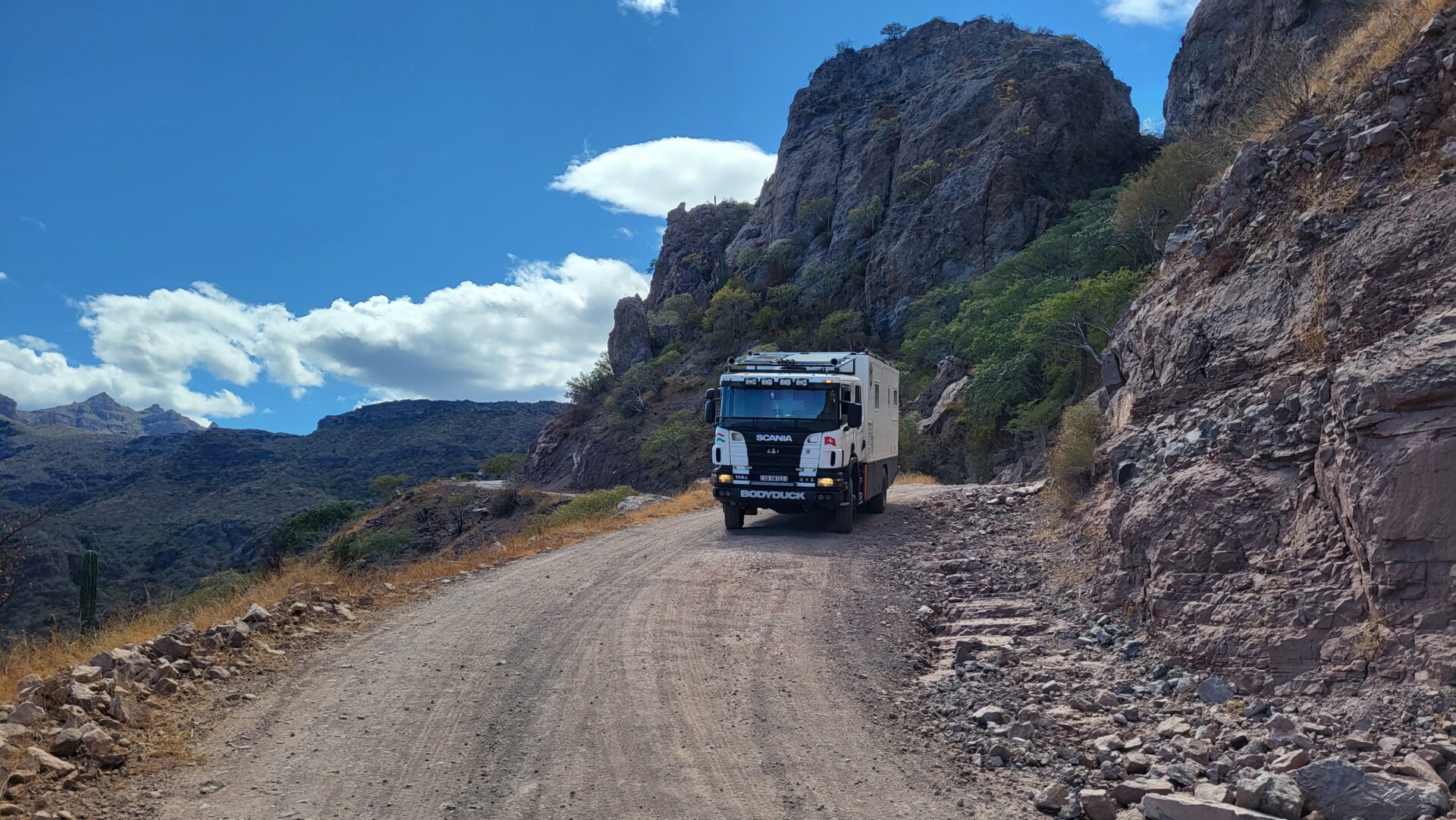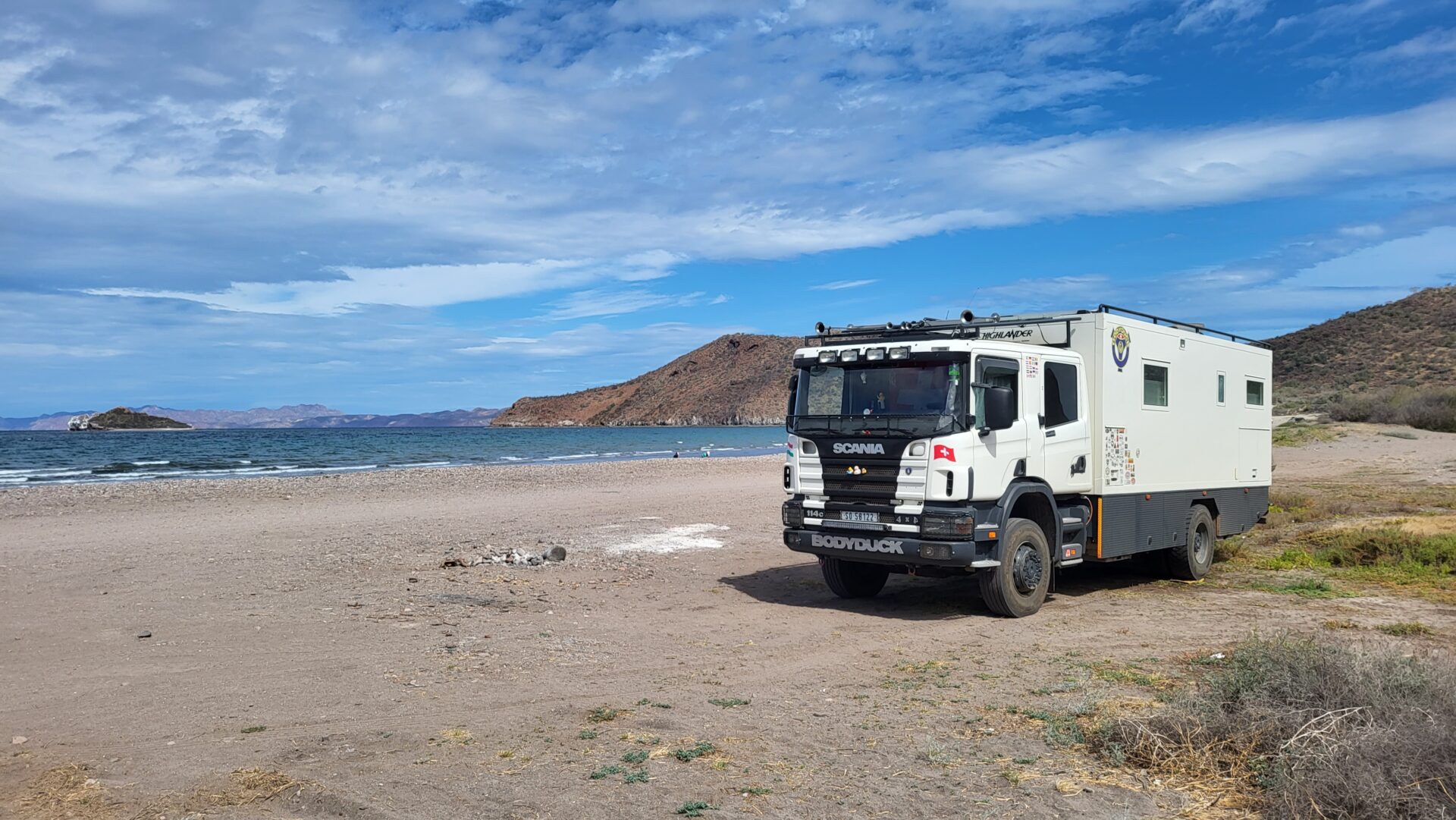Ein Tag wie aus dem Bilderbuch: Wir finden einen spektakulären Platz unweit von Santa Rita (23.47337, -109.79351). Trotz der etwas abenteuerlichen Anfahrt hat sich jeder Meter für den Bodyduck gelohnt.