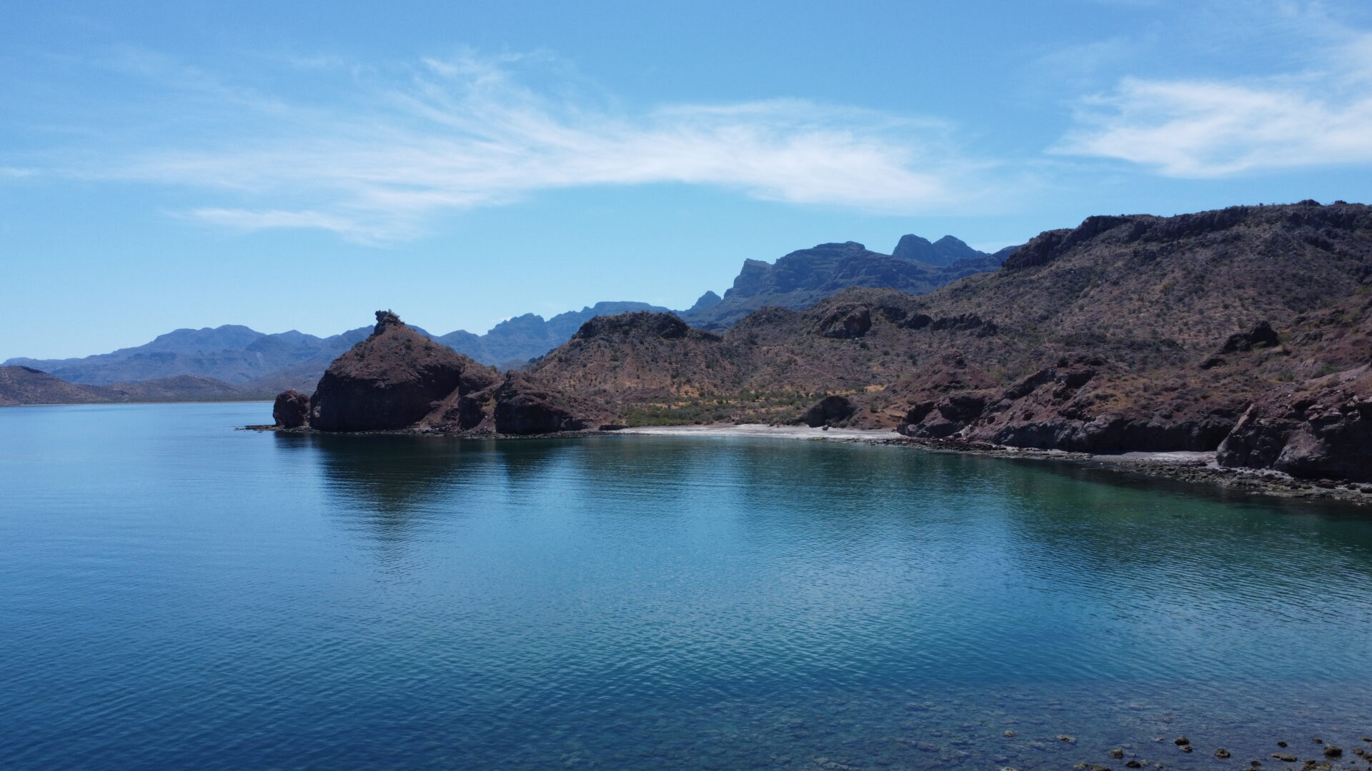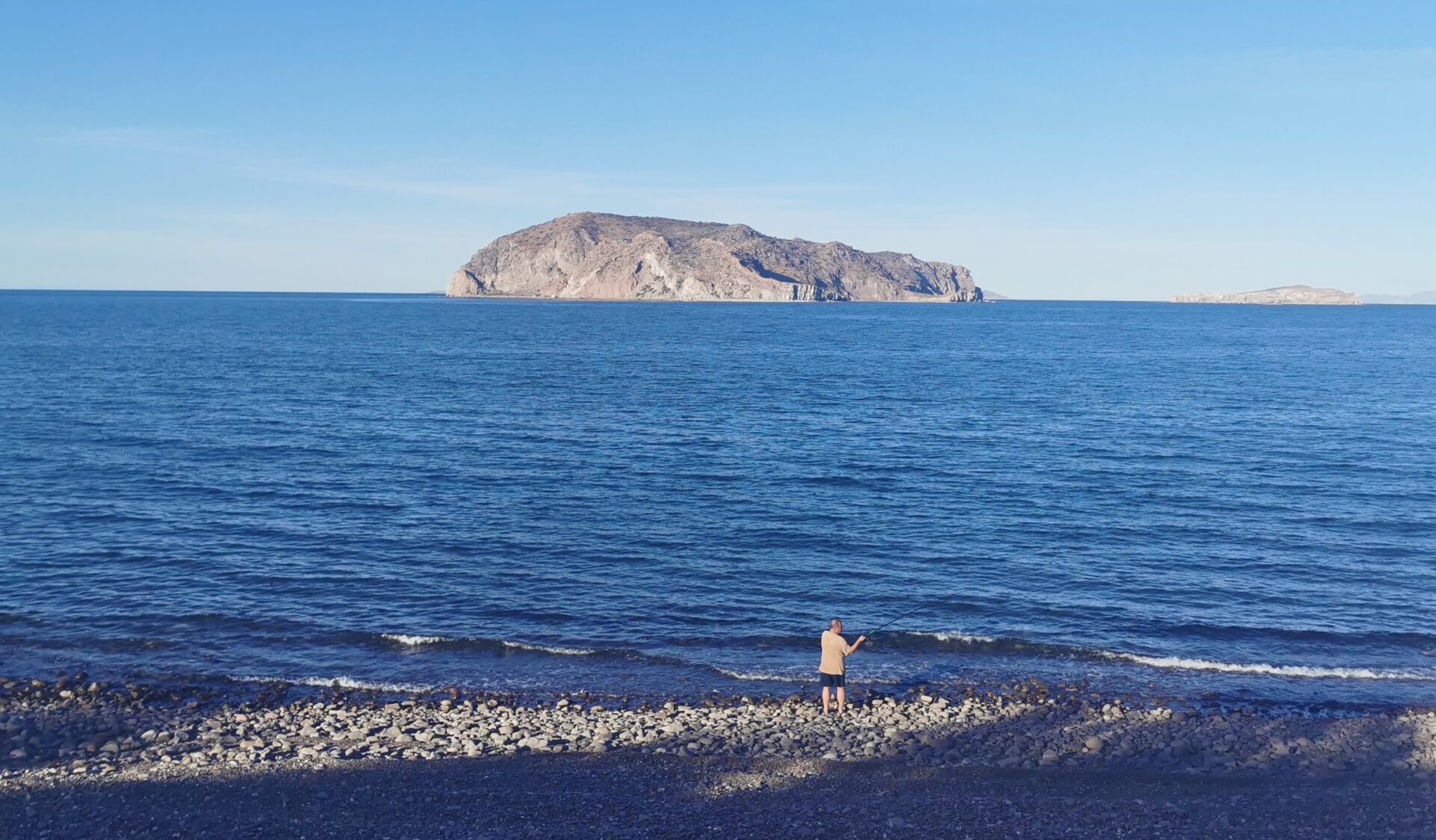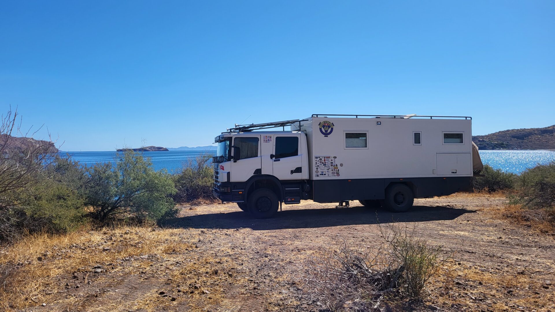 Nur eine kurze Fahrt von Loreto entfernt, finden wir unseren nächsten Schlafplatz an der Playa Juncalito. Die Bucht ist wunderschön gelegen und wird von den Ausläufern der Sierra de la Giganta eingerahmt. Auch wenn der Strand etwas steinig ist, hält uns das nicht zurück: Das Wasser ist glasklar und lädt herrlich zum Baden ein.