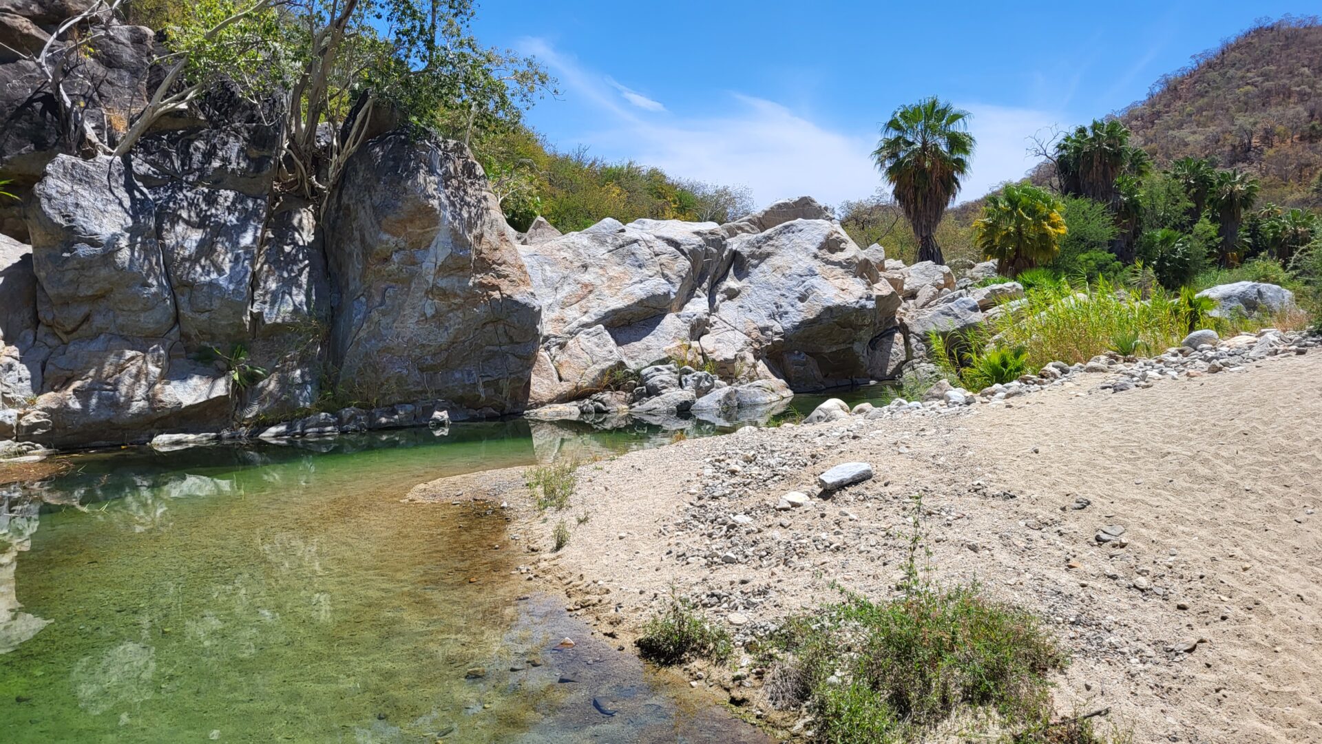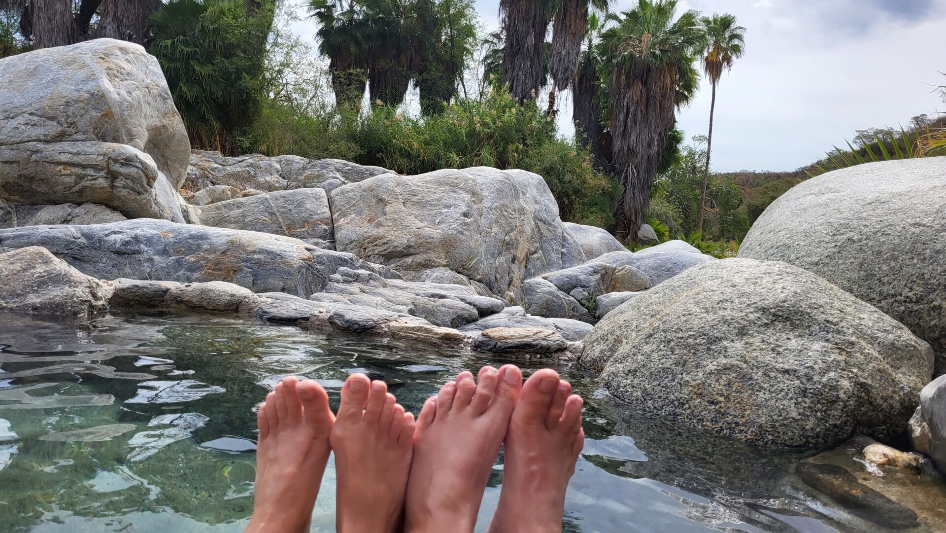 Es ist ein unglaubliches Gefühl, im warmen Quellwasser zu sitzen, während nur ein paar Meter weiter die kühleren Wellen des Golfs an die Felsen schlagen. Ein privates Spa-Erlebnis mitten in der mexikanischen Wildnis!