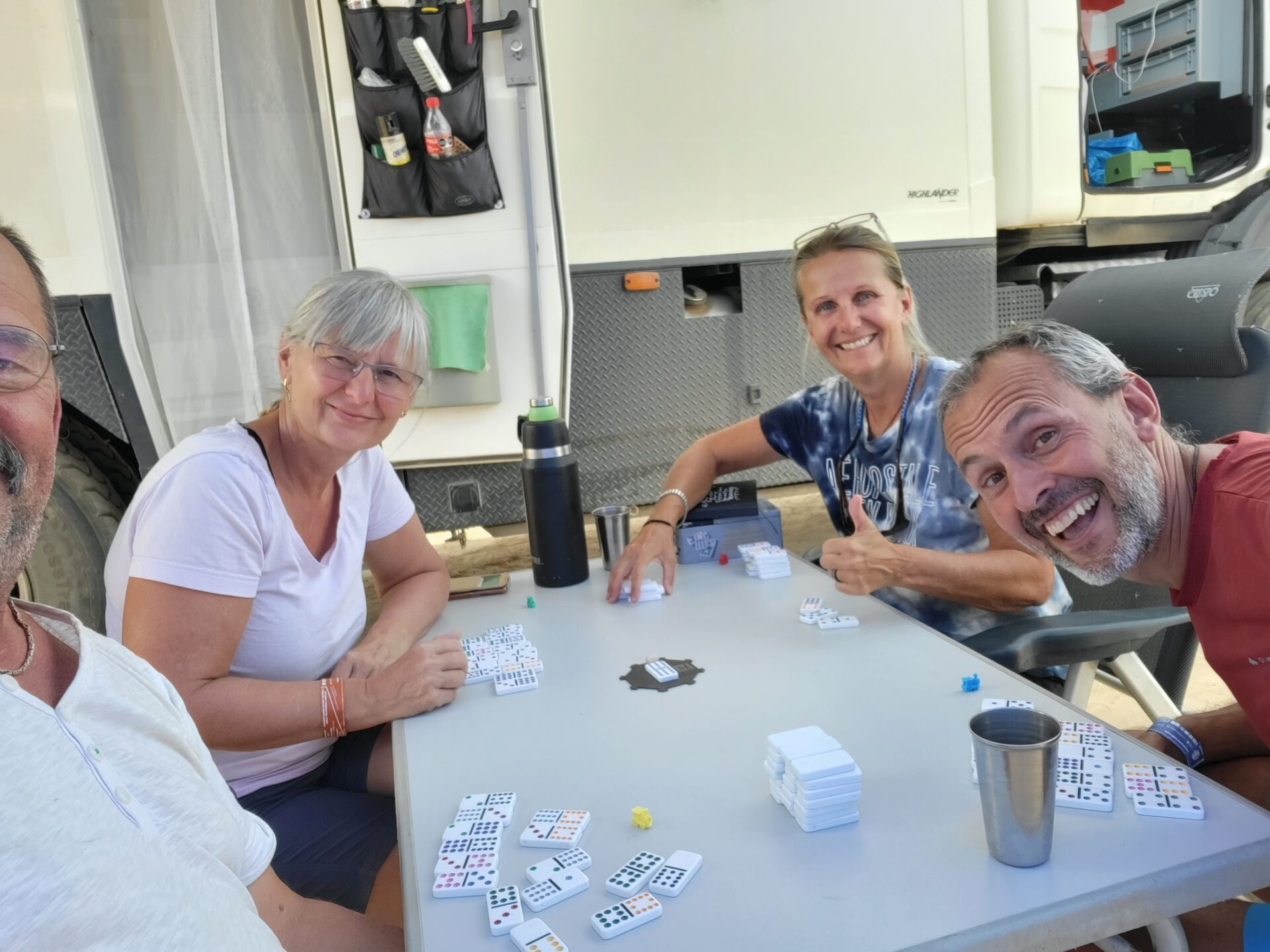 Besonders schätzen wir unseren Stellplatz, da er uns den nötigen Windschutz bietet. So können wir die Abende draussen verbringen und intensiv jassen, bis die Karten förmlich glühen. Es wird gelacht, taktiert und wir hinterlassen unsere „Spuren“ in Form von gemütlichen Stunden und tollen Erinnerungen an diesen besonderen Ort.