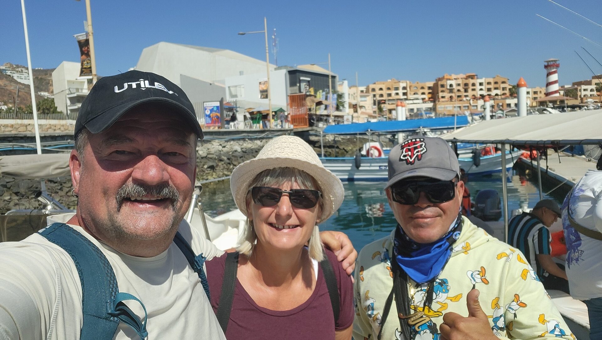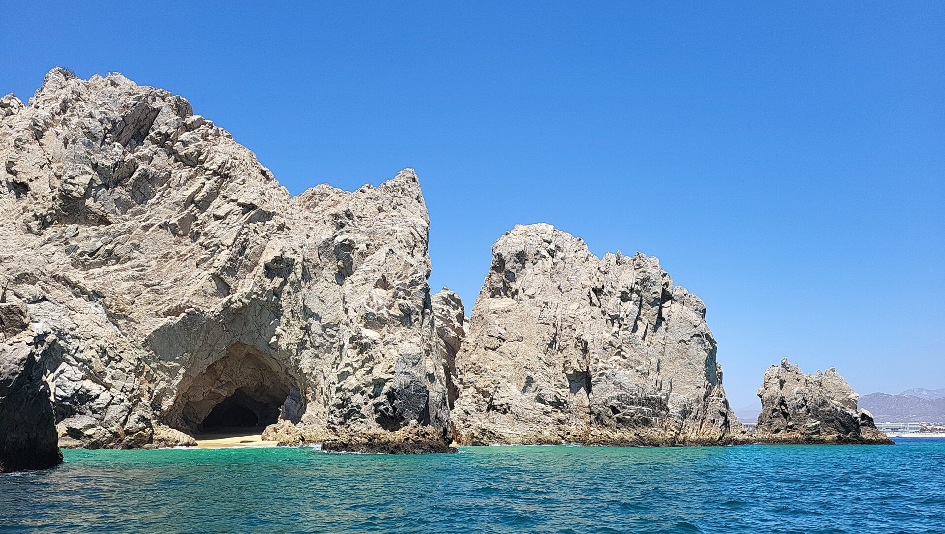Nachdem wir am Vorabend das quirlige Treiben an der Hafenpromenade von Cabo San Lucas bei einem feinen Abendessen genossen haben, zieht es uns heute hinaus aufs offene Meer. Voller Vorfreude besteigen wir unser Boot für die geplante Tour zum südlichsten Zipfel der Halbinsel. Wir gleiten sanft über das türkisblaue Wasser, vorbei am malerischen Playa de los Amantes, dem Liebesstrand, der versteckt zwischen den steilen Klippen liegt. Kurz darauf passieren wir den markanten Pelican Rock, wo sich zahlreiche Seevögel und unter der Wasseroberfläche bunte Fischschwärme tummeln.