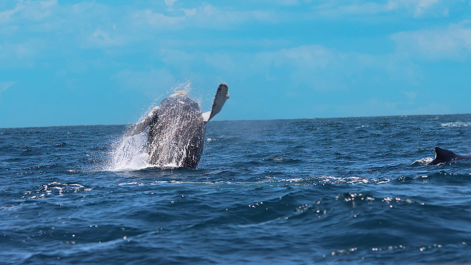 Doch die Natur hat noch eine ganz besondere Überraschung für uns parat. Zu unserer riesigen Freude zeigt sich das Meer von seiner spektakulärsten Seite: Wir begegnen Grauwalen. Es ist ein unbeschreiblicher Anblick, als diese sanften Riesen direkt vor unseren Augen aus dem Wasser schnellen und mit gewaltiger Wucht wieder eintauchen. Dieses „Breaching“ aus nächster Nähe zu erleben, sorgt bei uns für echte Gänsehaut-Momente. Es ist ein Privileg, diese majestätischen Tiere in ihrem natürlichen Element so ausgelassen beobachten zu dürfen.