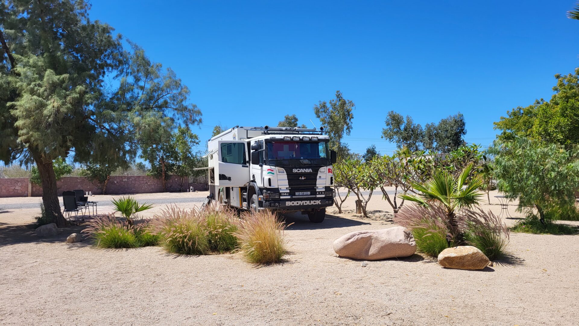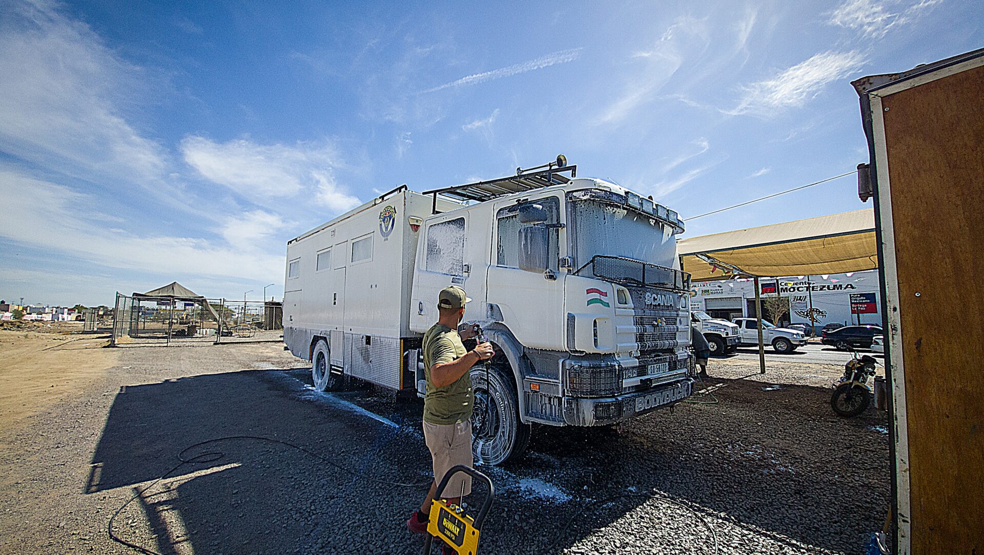 Wieder zurück in La Paz (24.085455, -110.307684), ist es Zeit für eine gründliche Reinigung. Unser Bodyduck hat sich nach all den Abenteuern in Staub und Sand eine ausgiebige Dusche mit Wellness verdient. Wir steuern El Lalito Car Detailing an – ein Tipp, den wir bei iOverlander entdeckt haben.