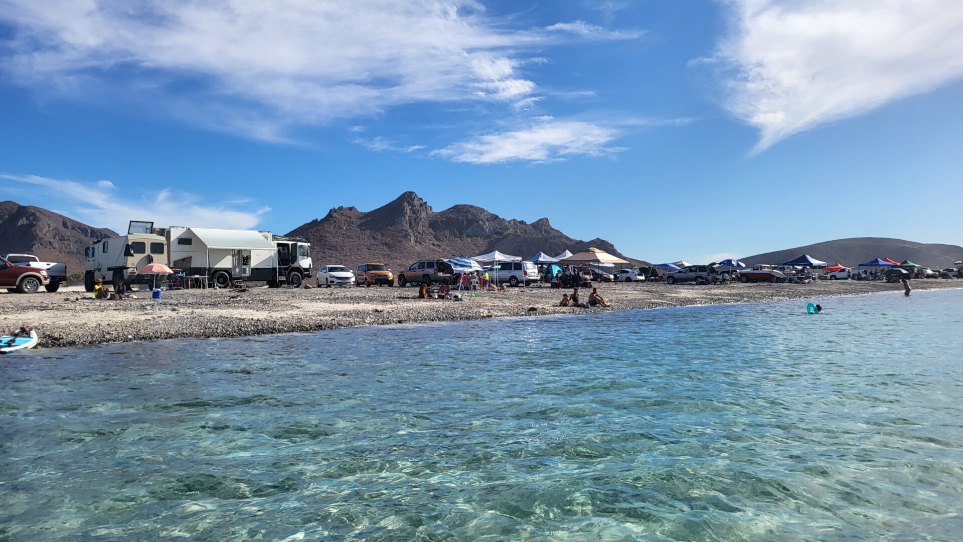 Wir haben die Fähre nach Topolobampo für morgen um 13:30 Uhr gebucht. Den letzten Abend geniessen wir entspannt am Strand, umgeben von der ausgelassenen Stimmung einiger Einheimischer.