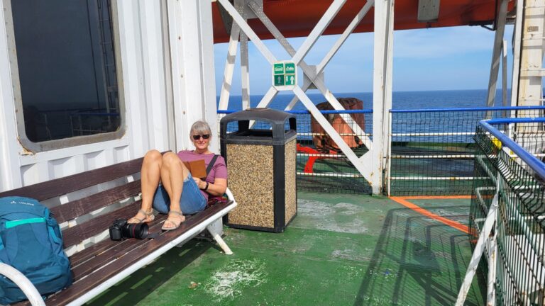 Ein wichtiger Hinweis für Paare: Nur der Fahrer darf mit dem Fahrzeug auf das Schiff fahren. Alle Passagiere müssen im Wartesaal des Hauptgebäudes warten, bis sie mit einem Kleinbus direkt zur Fähre gebracht werden. Die Überfahrt soll ca. 7 bis 8 Stunden dauern – genaueres weiss man hier nie so recht.