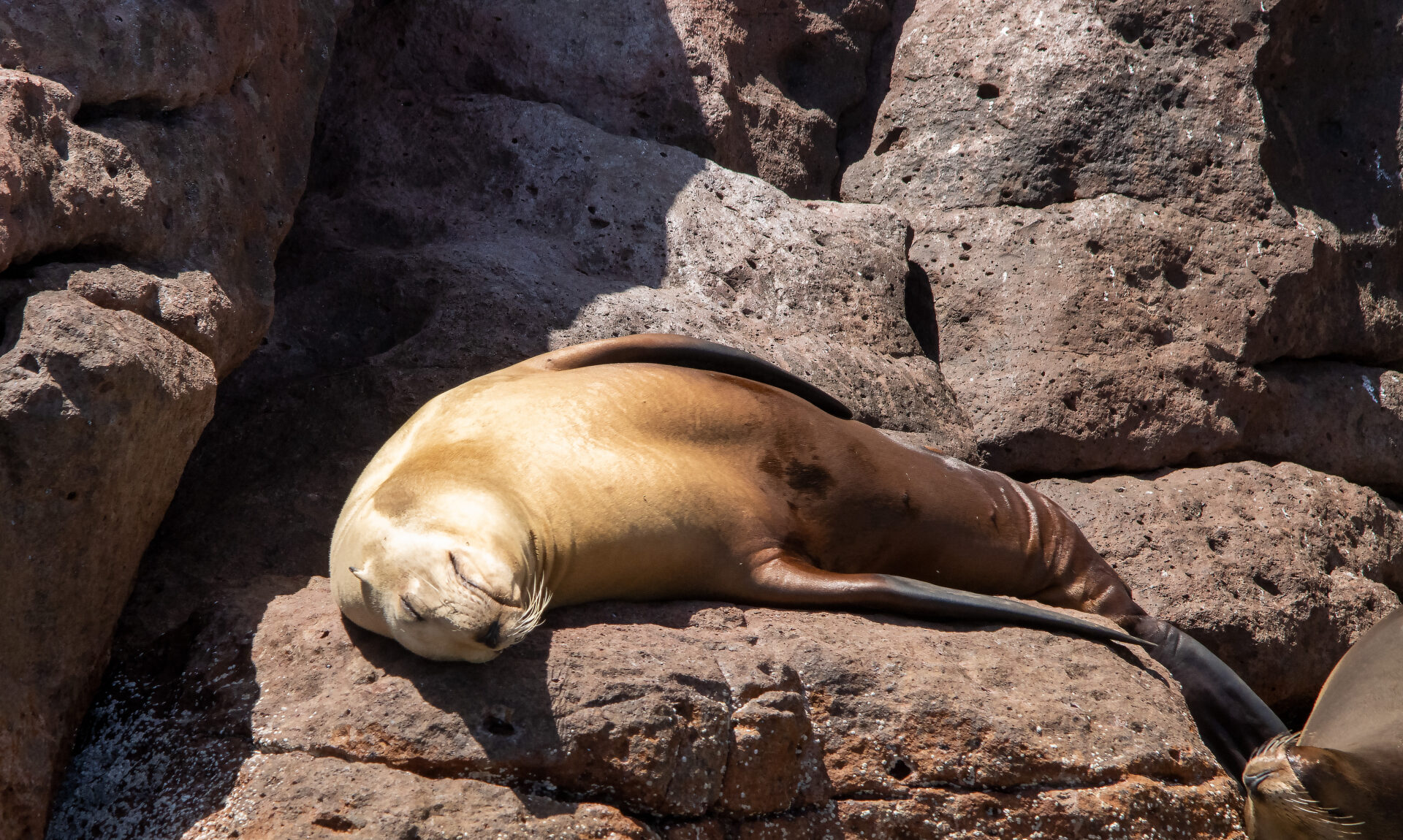 Die Fahrt führt uns an einem mit Mangroven bewachsenen Uferabschnitt vorbei, der von hunderten Fregattvögeln aus Patagonien belebt wird. Vorbei an einsamen, weissen Sandstränden erreichen wir die nördlichsten Felsformationen der Insel. Hier wartet das absolute Highlight: Wir springen ins Wasser und schnorcheln hautnah mit einer Seelöwen-Kolonie. Es ist ein einmaliges Erlebnis, zwischen den verspielten Tieren, leuchtenden Korallen und hunderten farbigen Fischen zu schwimmen.