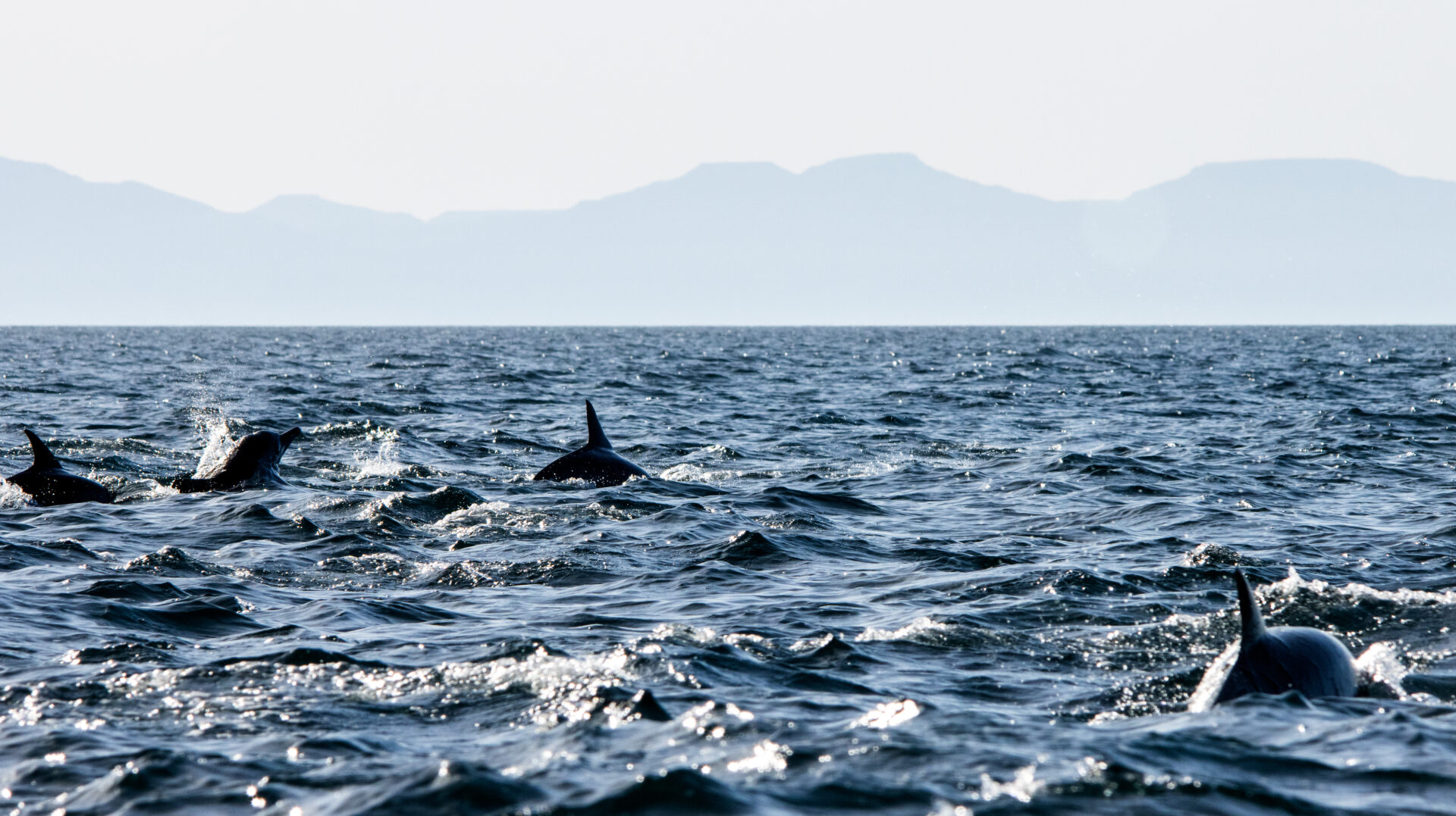 Plötzlich Bewegung in der Ferne… DELPHINE! Als wir näher kommen, finden wir uns inmitten eines riesigen Schwarms wunderiger und springender Meeressäugetiere wieder. Wir sind alle komplett aus dem Häuschen über so viel unberührte Natur.