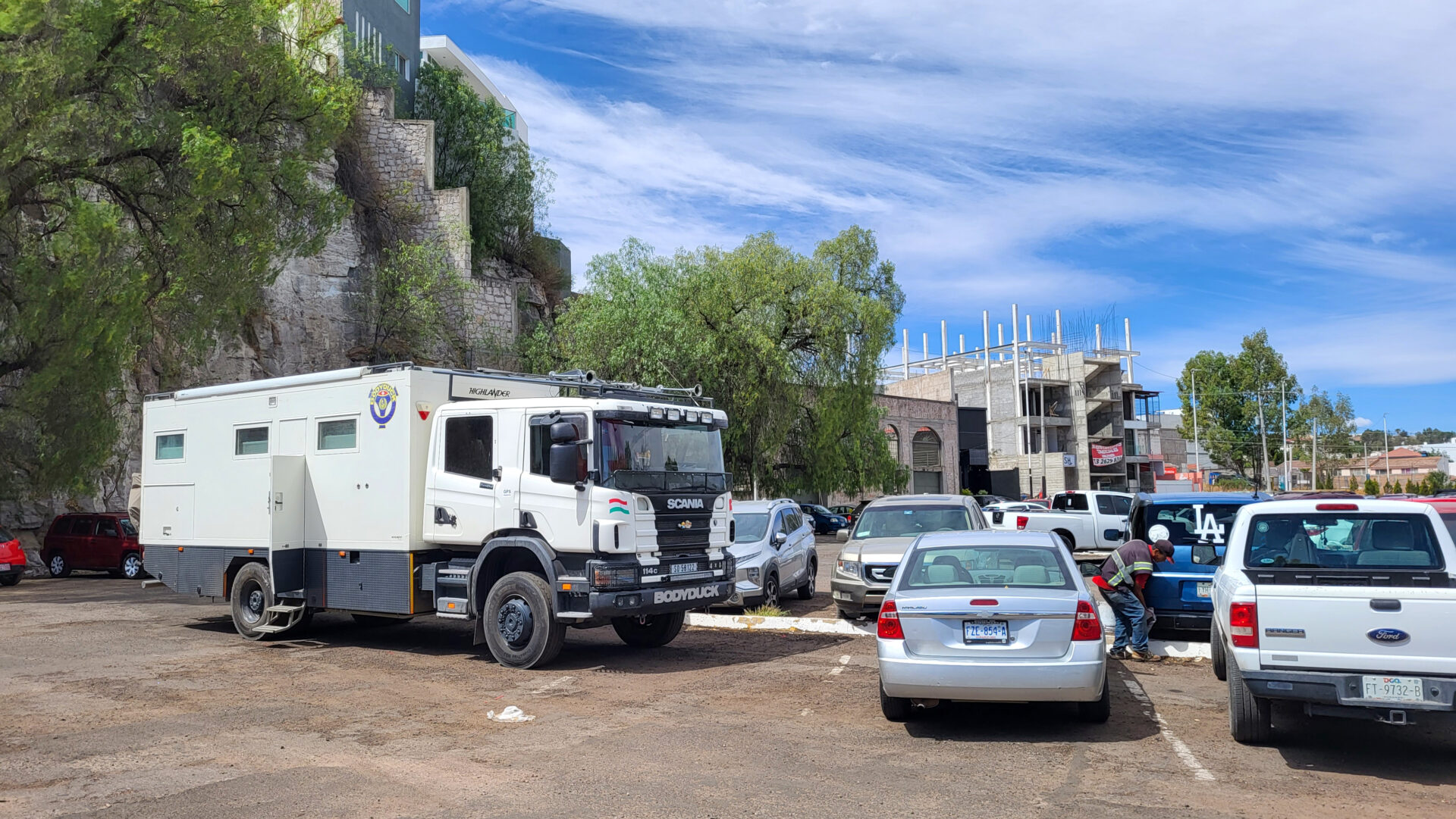 Wir erreichen die beeindruckende Silberstadt Zacatecas. Unser Standplatz für die Nacht ist beim Hotel Baruk. Für 450 Pesos haben wir hier einen sicheren Platz inklusive Strom, Wasser und der Nutzung der Sanitäranlagen. Die Lage ist ideal: In nur fünf Minuten sind wir mitten im Geschehen.