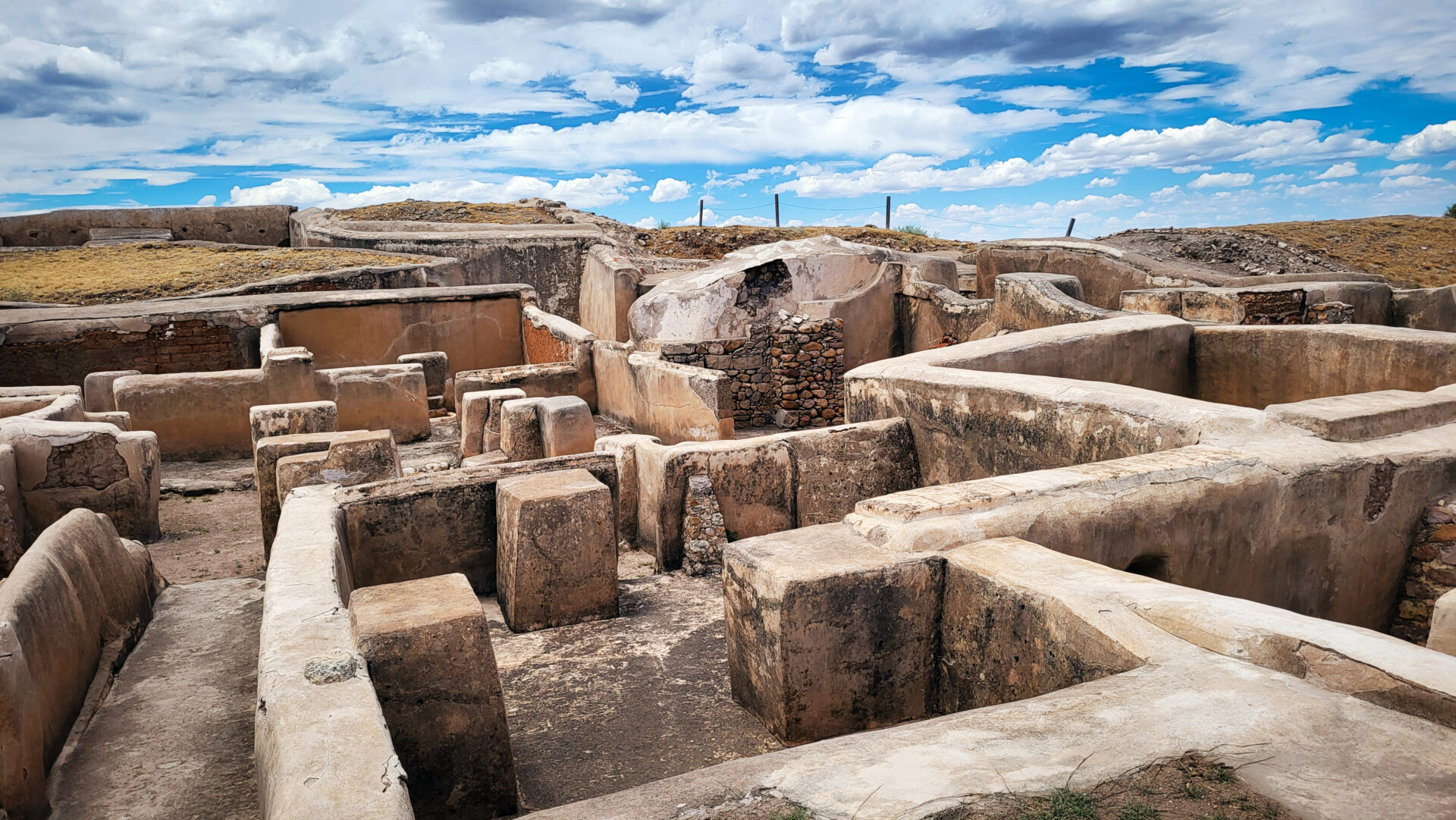 Wir besuchten die beeindruckenden Ruinen der Chalchihuites-Kultur, die hier zwischen 200 und 950 n. Chr. ihre Blütezeit erlebte. Die Anlage war ein bedeutendes zeremonielles und astronomisches Zentrum, fast genau am Wendekreis des Krebses gelegen. Im kleinen Museum vor Ort konnten wir viele Fundstücke wie Keramiken und Werkzeuge bewundern, die bei den Ausgrabungen ans Licht kamen.