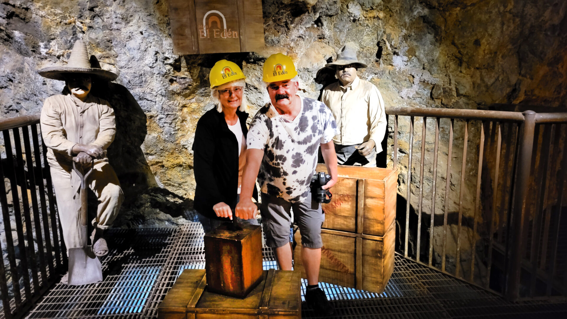 Gleich um die Ecke von unserem Parkplatz tauchen wir in eine andere Welt ein: die Mina El Edén. Die Geschichte dieser Mine begann um 1586. Fast vier Jahrhunderte lang, bis 1960, wurden hier Silber, Gold sowie unzählige Edelsteine und Mineralien ans Tageslicht gefördert. Es war einst die reichste Mine Mexikos, doch der Glanz des Metalls hatte einen hohen Preis.