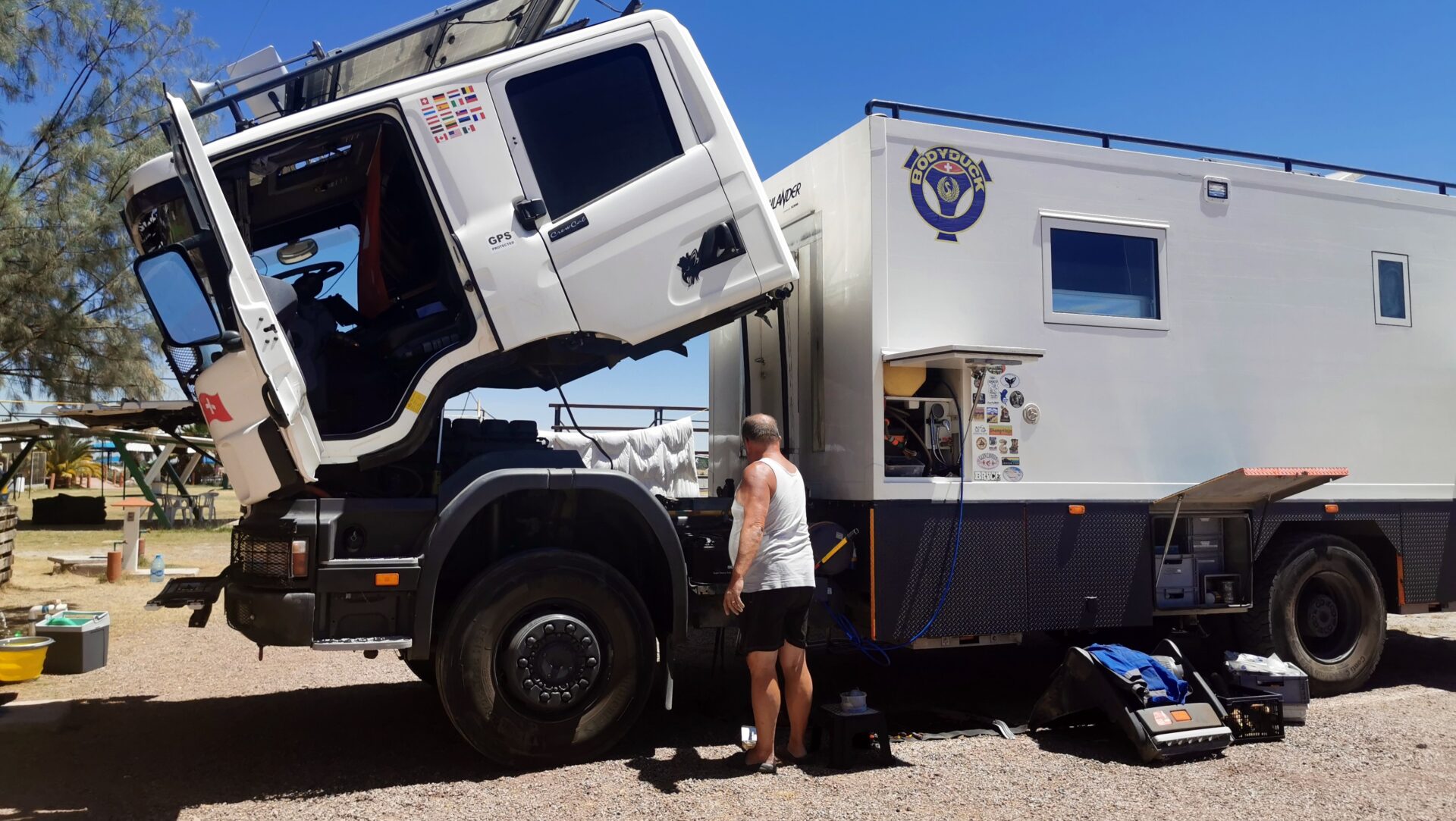 Wir haben uns für zwei Tage im Villa Celeste Hotel Boutique & RV niedergelassen. Nach der Überfahrt aufs Festland ist dies der perfekte Ort, um einige kleinere Unterhaltsarbeiten am Bodyduck vorzunehmen.