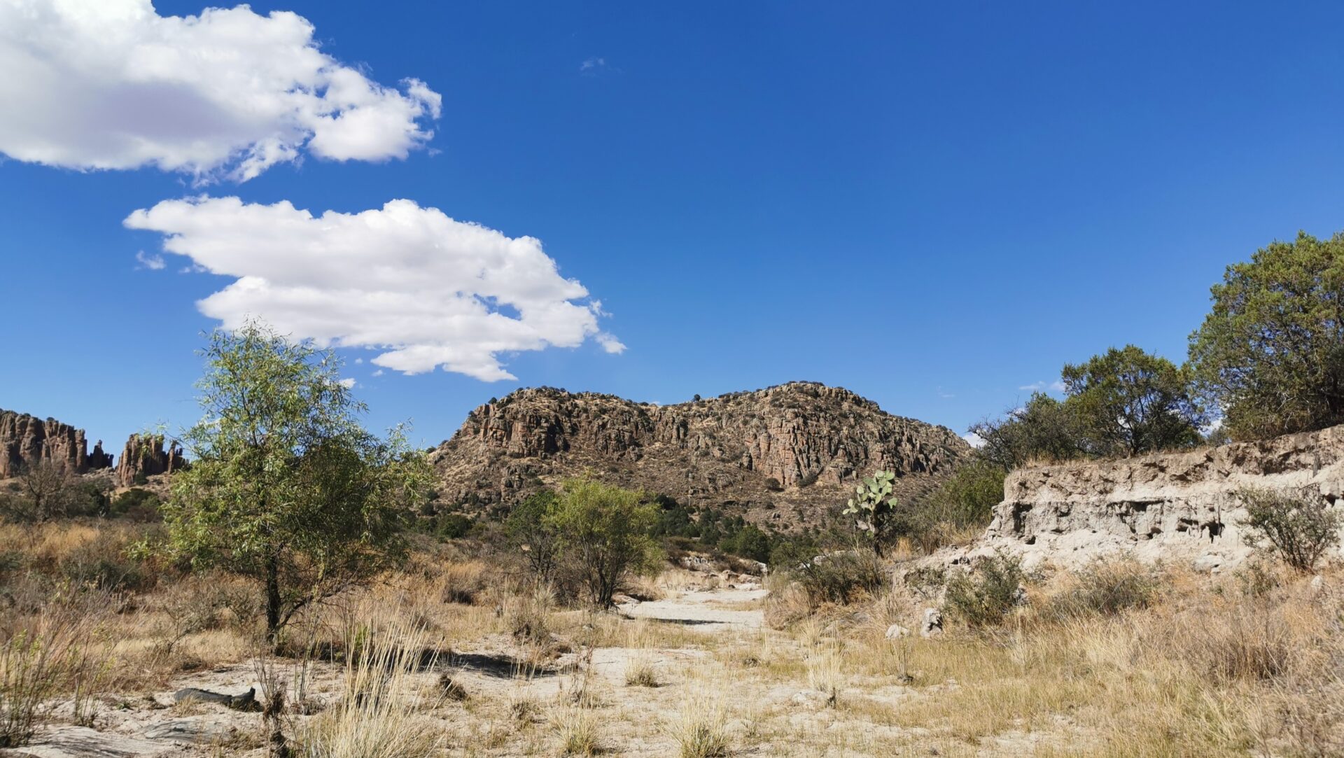 Wir verbringen den Tag im Parque Nacional Sierra de Órganos, einer Landschaft, die uns mit ihren monumentalen Felsformationen schlichtweg den Atem raubt. Diese riesigen Rhyolith-Säulen ragen wie versteinerte Orgelpfeifen hunderte Meter in den Himmel und bilden ein wahres Labyrinth aus Stein.