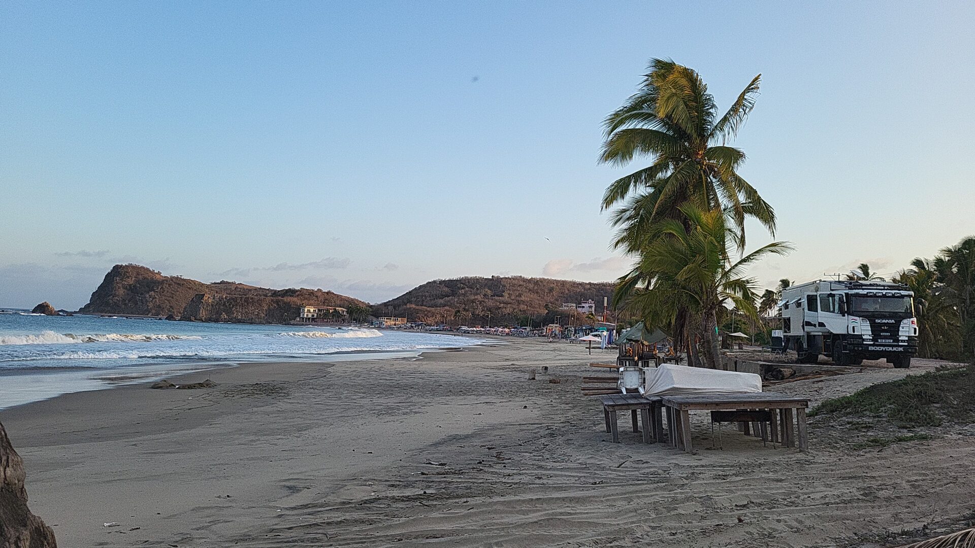 Wir haben unser Lager an der Playa Tenacatita aufgeschlagen. Der Strand ist schlichtweg traumhaft und bietet wunderbare Bedingungen, um ein paar entspannte Tage am Pazifik zu verbringen. Der kilometerlange Sandstrand lädt zu ausgiebigen Spaziergängen ein, bei denen man wunderbar den Kopf frei bekommt und die Seele baumeln lassen kann.