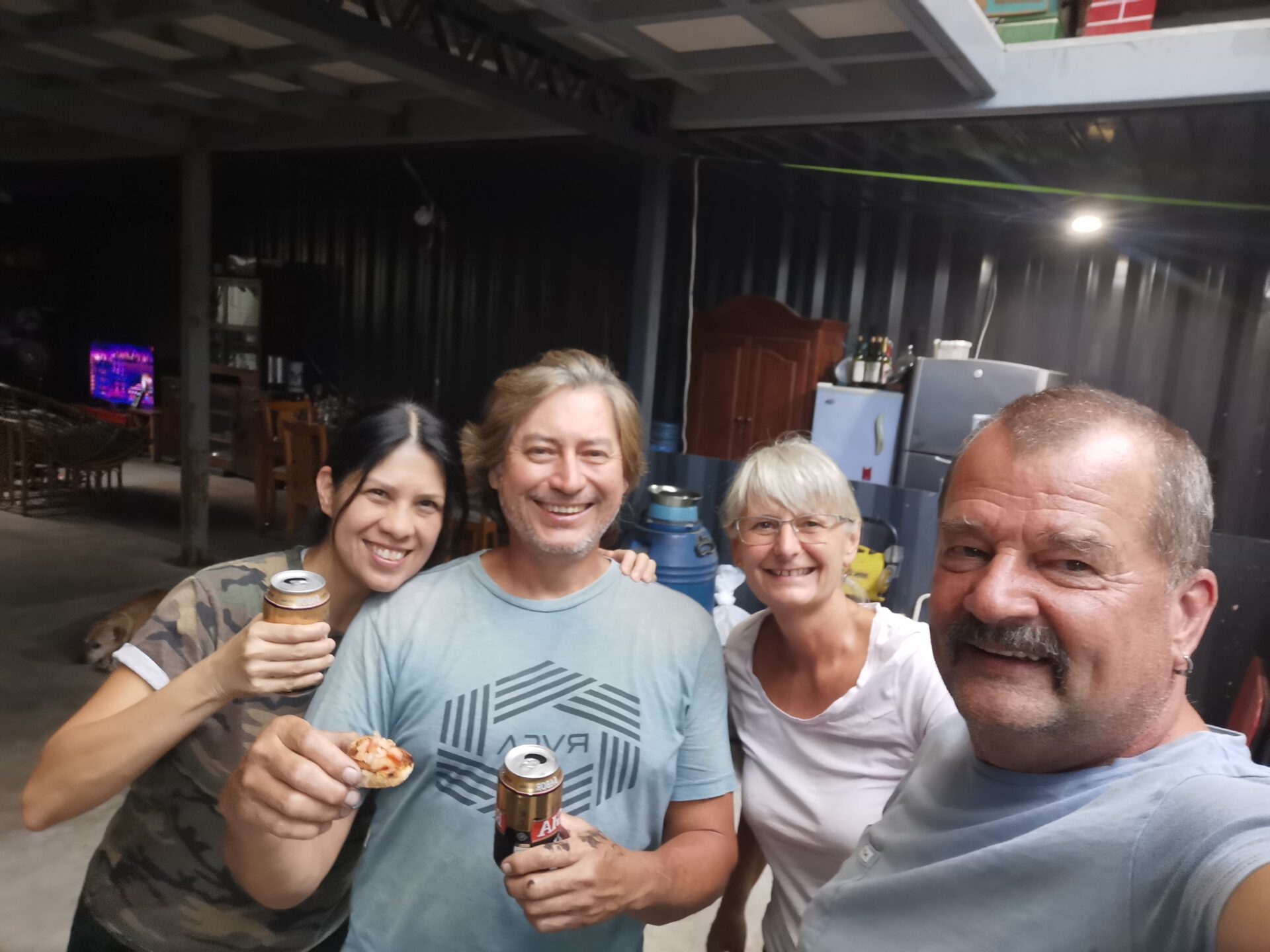 Wir kehren in eines der Restaurants ein, um gemeinsam mit Irene und Eddie den Abend zu geniessen. Kaum haben wir das erste Bier und eine reichhaltige Aperoplatte vor uns, bricht der Himmel über uns auf. Ein heftiger Regenschauer prasselt nieder, begleitet von gleissenden Blitzen und kräftigem Donner. In diesem Moment sind wir mehr als froh, ein festes Dach über dem Kopf zu haben und in so guter Gesellschaft zu sein.