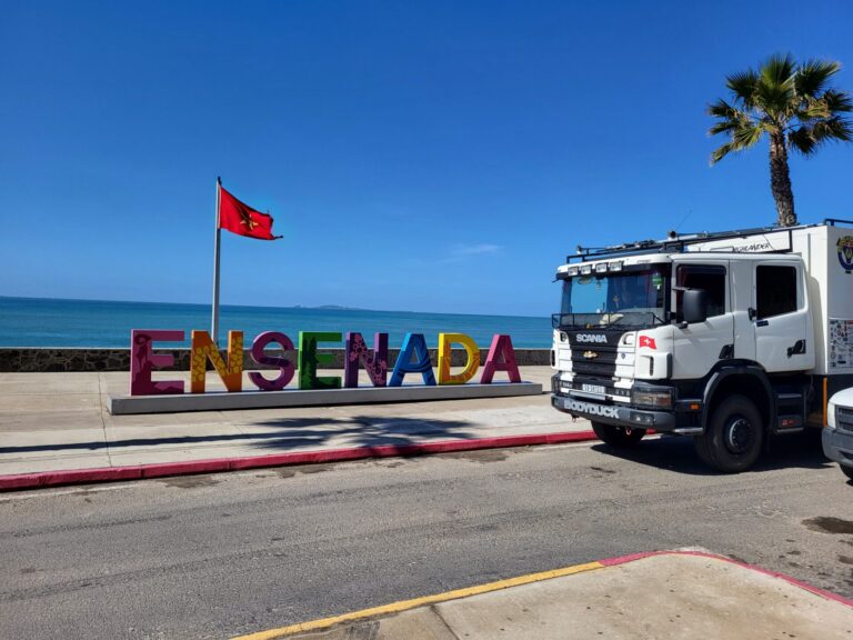 In Ensenada regnet es leider immer noch in Strömen. Unsere Suche nach Bargeld gestaltet sich zudem äusserst harzig. Entweder spucken die Geldautomaten (ATM) nur US-Dollar aus, sie funktionieren schlichtweg nicht, oder sie verlangen unverschämte Gebühren von 150 bis 170 Pesos… 🤯 Das ist ein kleiner Dämpfer zum Start, aber wir lassen uns nicht entmutigen.