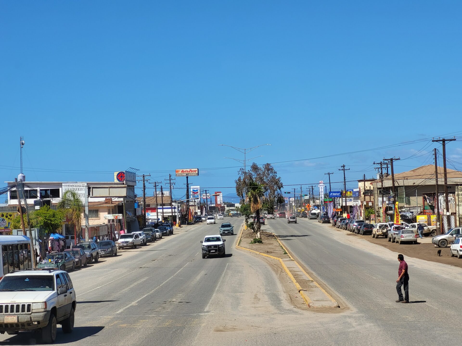 Nach nur kurzer Fahrt erblicken wir zum ersten Mal den Golf von Kalifornien. Die Strasse Mex 1 führt uns nun malerisch an der Küste entlang Richtung Süden. Unser erster Stopp ist Santa Rosalía. Hier haben wir endlich Erfolg bei der Bargeldsuche: Bei der Citibanamex kostet der Barbezug nur gerade 34.74 Pesos Gebühr – ein echtes Schnäppchen im Vergleich zu unseren bisherigen Erfahrungen! Allerdings liegt das Limit pro Bezug bei 9’000 Pesos.