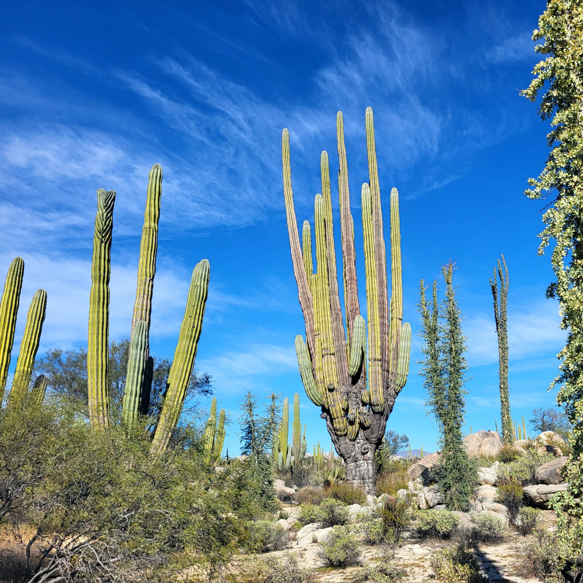 Das Valle de los Cirios ist nach dem Boojum Tree (Cirio) benannt, der aussieht wie eine riesige, umgedrehte Karotte mit kleinen Zweigen. Zusammen mit den mächtigen Cardón-Kakteen bilden sie eine Kulisse, die fast surreal wirkt. Die Stille hier draussen ist absolut – kein Zivilisationslärm, nur das leise Pfeifen des Windes zwischen den Dornen.