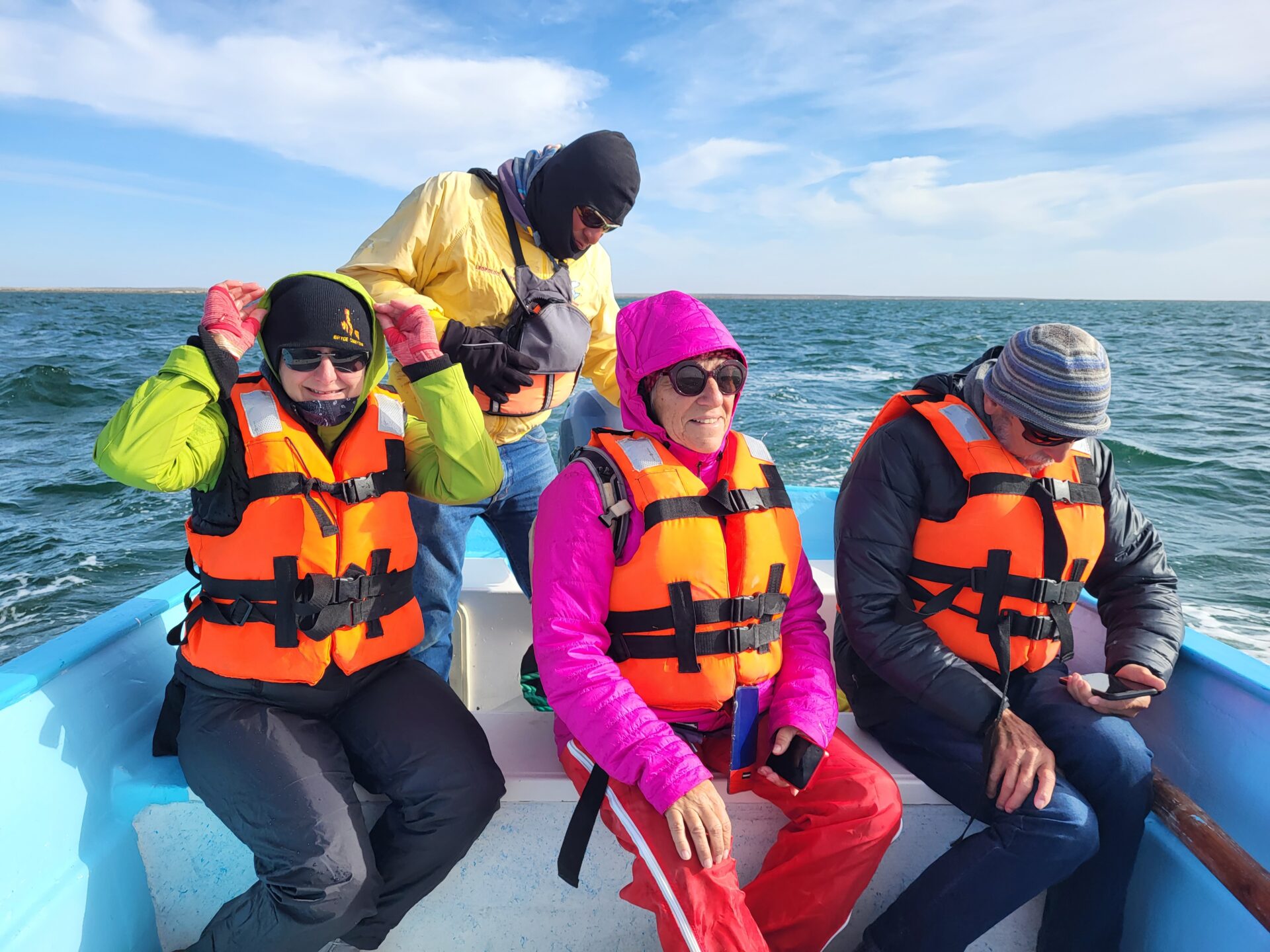 Am nächsten Morgen geht es los: Gemeinsam mit Margrit und Walter aus Hedingen mieten wir zu viert ein Boot. Die Begegnung mit den Grauwalen ist tief beeindruckend und lässt uns die kühle Nacht sofort vergessen.