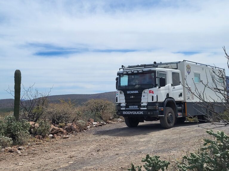 Wir haben einen wunderschönen, absolut ruhigen Platz für die Nacht inmitten der uralten Kakteen gefunden. In dieser kargen Wüstenlandschaft wachsen die Giganten unter extremen Bedingungen nur etwa 4 Zentimeter pro Jahr. Wenn man vor einem der 15 Meter hohen Exemplare steht, wird einem die Ehrfurcht erst richtig bewusst: Ein solcher Baum müsste demnach über 350 Jahre alt sein. Sie haben Stürme, Dürren und Jahrhunderte überdauert und stehen nun als stumme Zeugen der Geschichte um unseren Bodyduck herum.