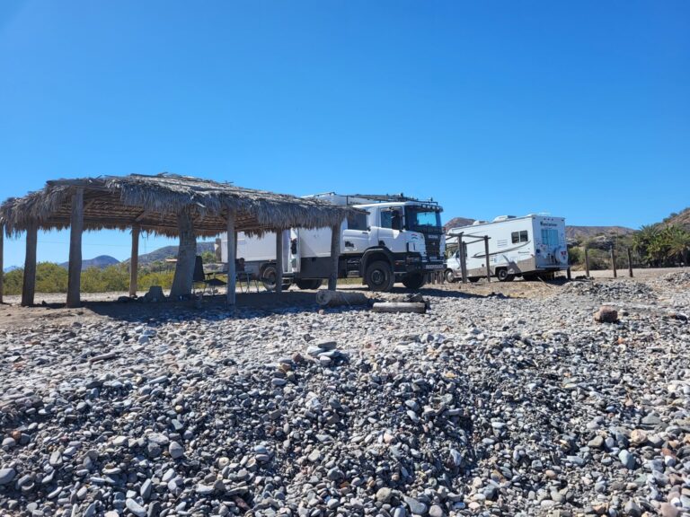 In Mulegé finden wir einen wunderschönen Platz direkt am Strand mit freier Aussicht auf das Meer. Wir entscheiden uns, hier gleich drei Tage zu bleiben. Tagsüber herrscht reger Betrieb durch Einheimische und Hundebesitzer, doch nachts hören wir nur das beruhigende Rauschen des Wassers.