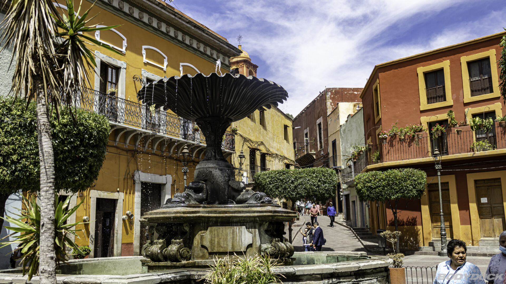 Vom RV Park Ramirez aus nehmen wir den Bus (8 Pesos pro Person) und tauchen direkt in das Herz einer der schönsten Städte Mexikos ein. Unser Weg führt uns zuerst zum Jardin Allende, dem zentralen Platz, der mit seinen perfekt gestutzten Lorbeerbäumen und schmiedeeisernen Bänken das pulsierende Zentrum bildet.