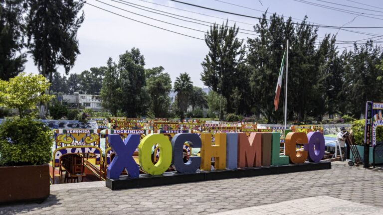 Am dritten Tag zieht es uns in den Süden der Stadt. Wir nehmen ein Uber und fahren zum Parque Ecologico de Xochimilco. Dieses riesige Gebiet mit seinen unzähligen Wasserkanälen ist weltberühmt. Hier fahren die traditionellen Trajineras – für den Tourismus bunt aufgemotzte, aber dennoch sehr hübsche Holzboote – die Kanäle hoch und runter.