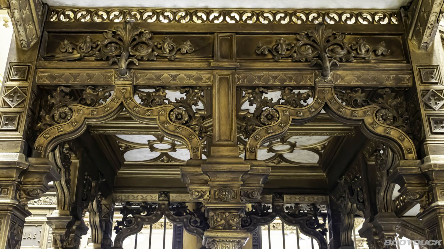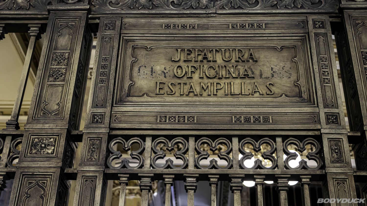 Im Inneren dominiert ein prachtvolles Treppenhaus aus glänzendem Messing und Marmor, das in Italien gefertigt wurde. Das Sonnenlicht fällt durch ein gewaltiges Glasdach und bringt die goldenen Verzierungen zum Strahlen. Man kommt aus dem Staunen kaum heraus – jede Säule und jedes Geländer ist ein Kunstwerk für sich. Es ist definitiv das prunkvollste Postamt, das wir je gesehen haben.