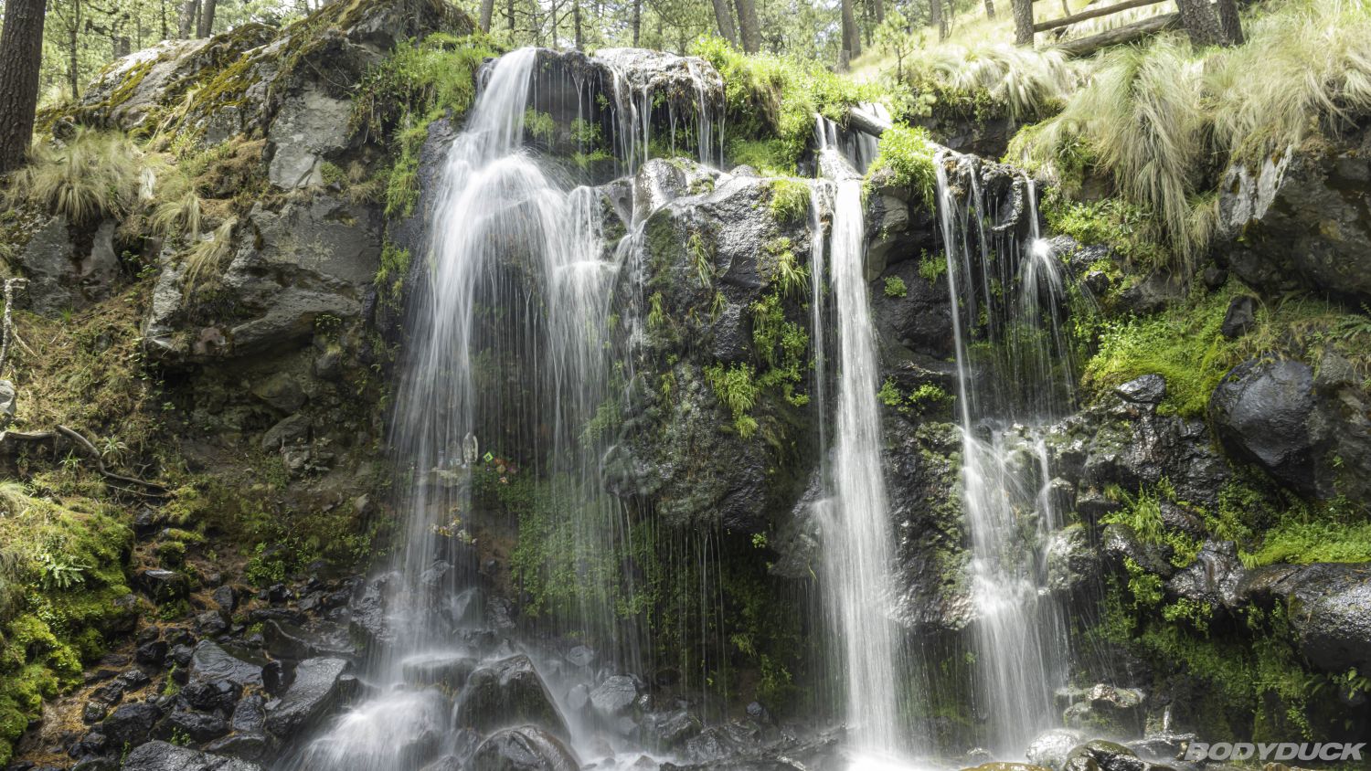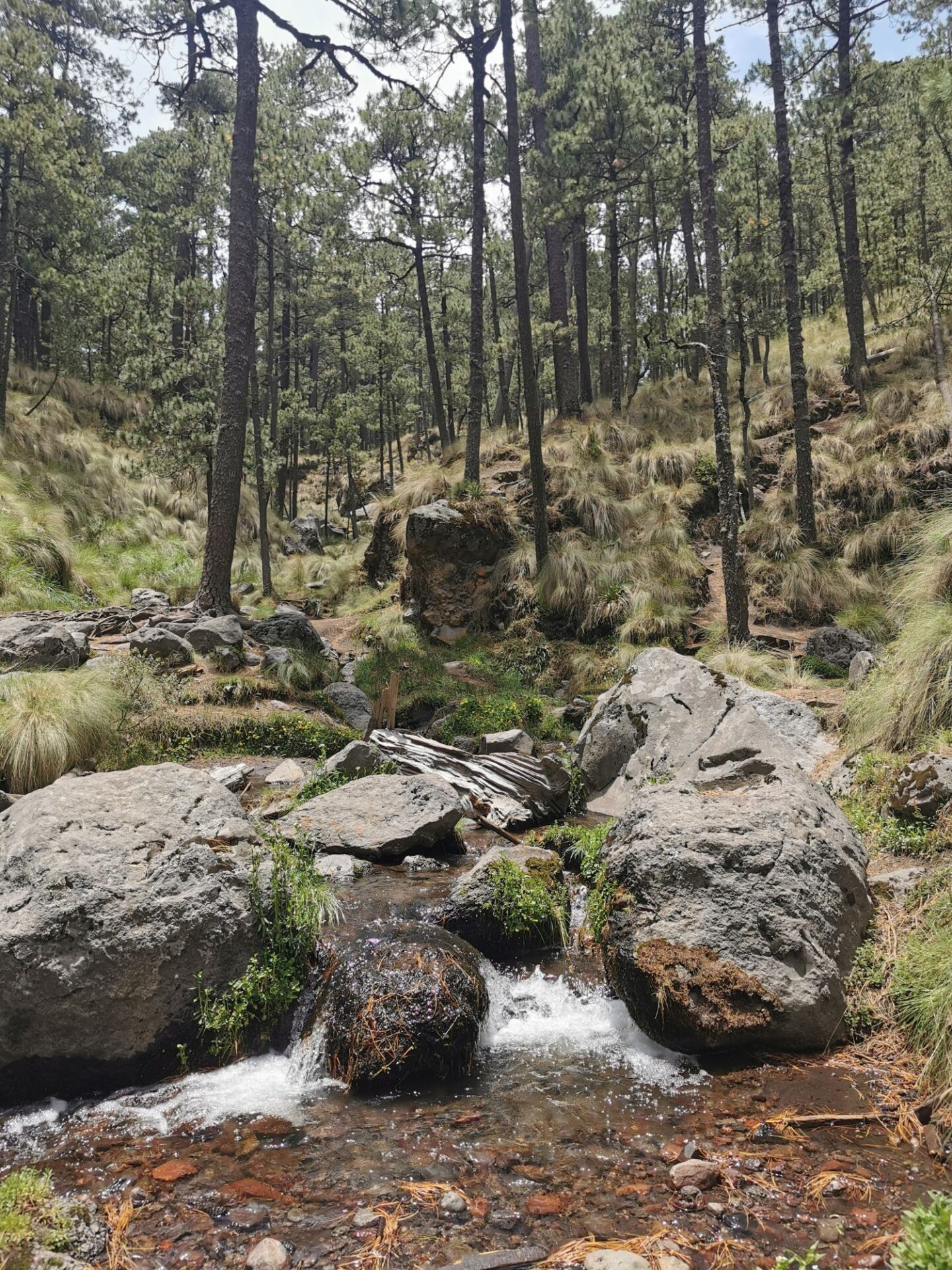 Gleich nachdem wir uns am kleinen See gemütlich installiert haben, hält uns nichts mehr im LKW. Wir ziehen die Wanderschuhe an und machen uns auf den Weg. Die Route führt uns zwischen uralten, charakterstarken Kiefern immer weiter den Berg hinauf in Richtung der Cascada Apatlaco.