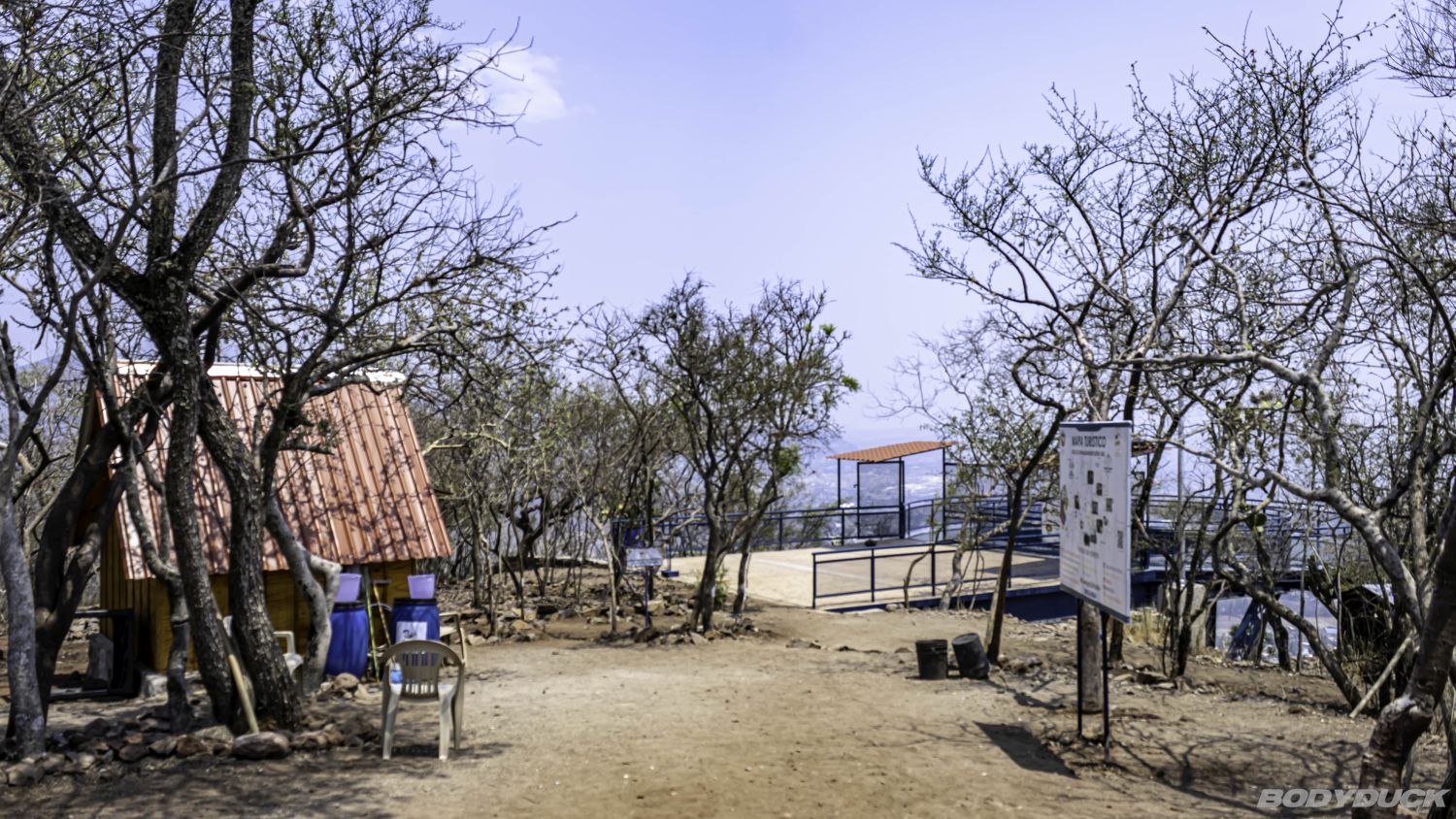 Kurz vor Huajuapan biegen wir rechts ab nach La Junta und weiter in Richtung El Castillo. Gleich nach dem kleinen Laden (Tienda) in El Castillo halten wir uns links. Von dort führt uns eine gut ausgebaute Schotterpiste etwa 3,5 Kilometer weit den Berg hinauf bis zum Wendepunkt. Hier parkieren wir den Bodyduck und machen uns an den Rest des Weges: In etwa 20 Minuten laufen wir zu Fuss hoch zum Mirador de Cristal.