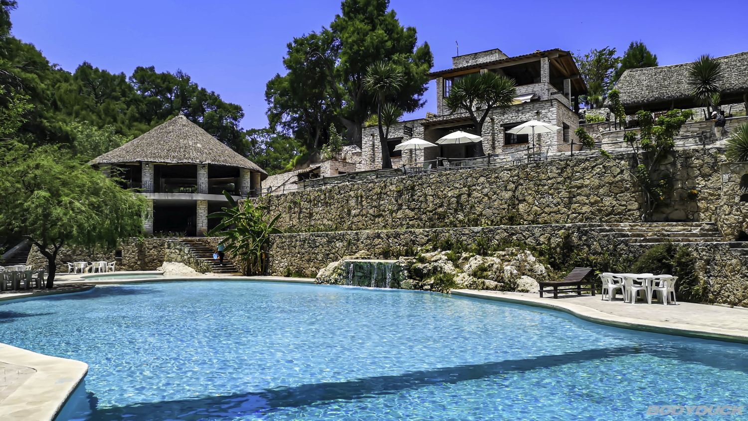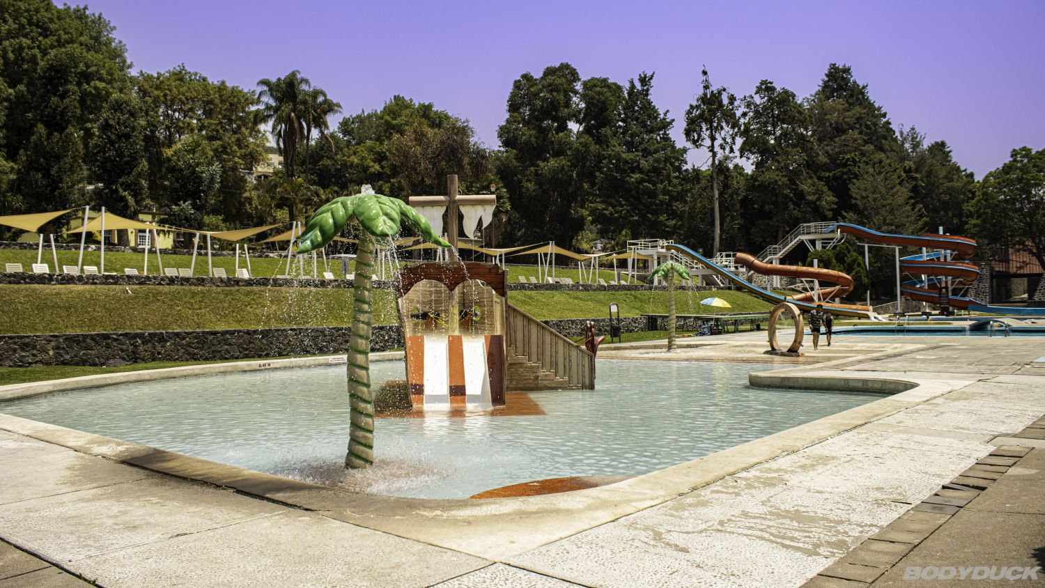 Das heutige Zentrum ist eingebettet in eine wunderschöne Wald- und Parkanlage. Das Angebot ist riesig: Es gibt Innen- und Aussenschwimmbecken, Hotels, ein Kongresszentrum und natürlich einen Campingplatz. Wir stehen bei den Koordinaten 18.937986, -98.471410 und geniessen die Annehmlichkeiten.