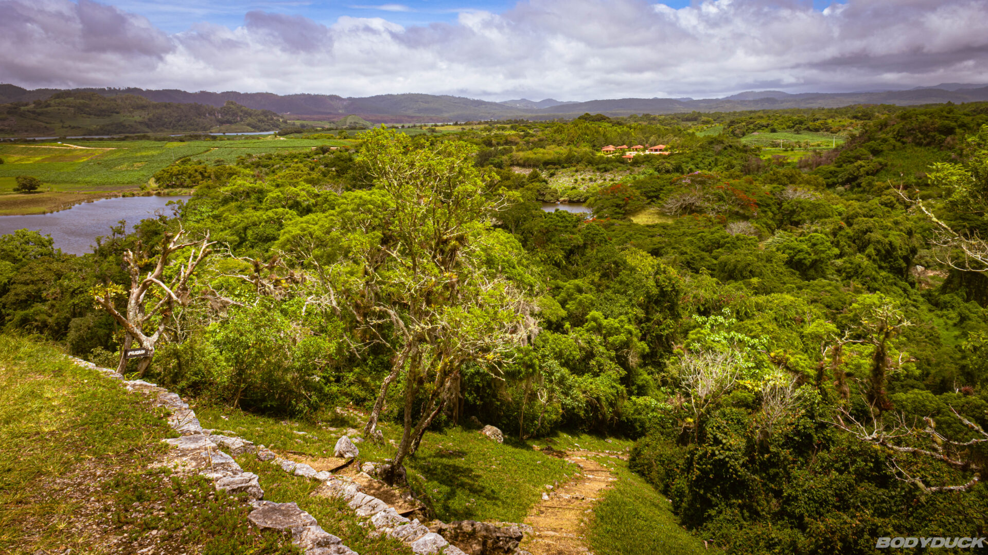 Wir folgen dem gekennzeichneten Rundweg und laufen eine gute Stunde stetig bergauf. Der Pfad führt uns durch dichte Vegetation, bis wir schliesslich die imposante Tempelpyramide erreichen. Der Weg ist zwar fordernd, aber die Vorfreude auf die Aussicht treibt uns voran.