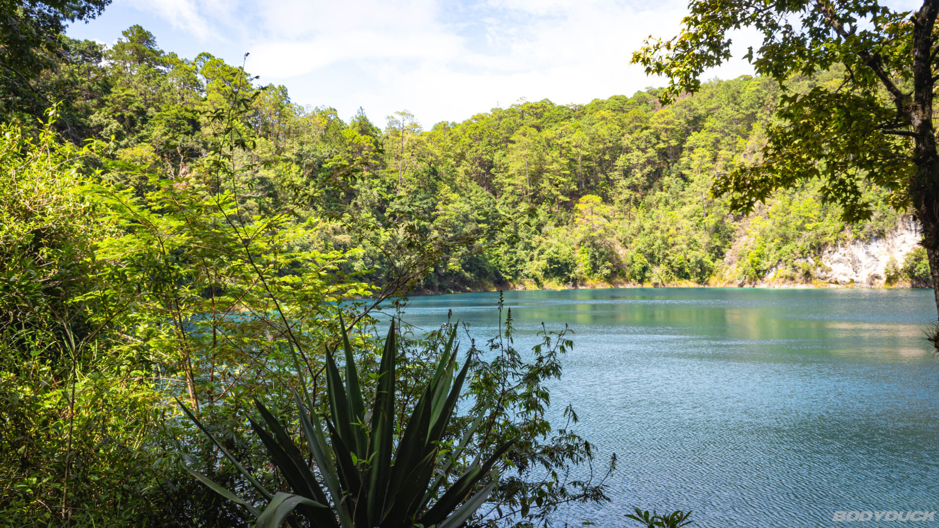 Unser erster grosser Stopp sind die Lagunas de Montebello. In dieser einzigartigen Landschaft verteilen sich an die 60 Seen und Cenoten, die in den unterschiedlichsten Blau- und Grüntönen schimmern. Wir finden einen traumhaften Platz beim Centro Ecoturístico Las Peñitas und stellen uns direkt ans Ufer.