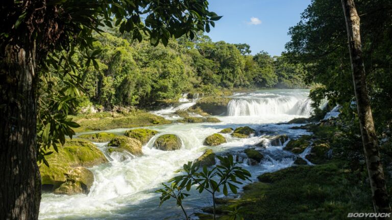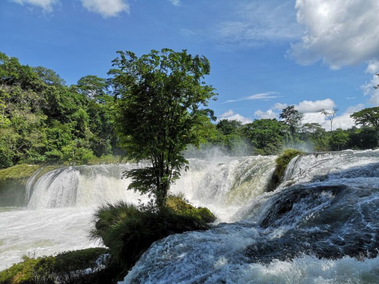 Wir finden einen fantastischen Stellplatz auf dem Campingplatz direkt bei den Wasserfällen (+16.19829, -91.33066). Zwei Tage lang geniessen wir die unglaubliche Kraft der Natur. Der Name „Las Nubes“ (die Wolken) ist hier Programm – die Gischt der herabstürzenden Wassermassen bildet einen feinen Nebel, der in der tropischen Hitze für eine hochwillkommene Abkühlung sorgt.
