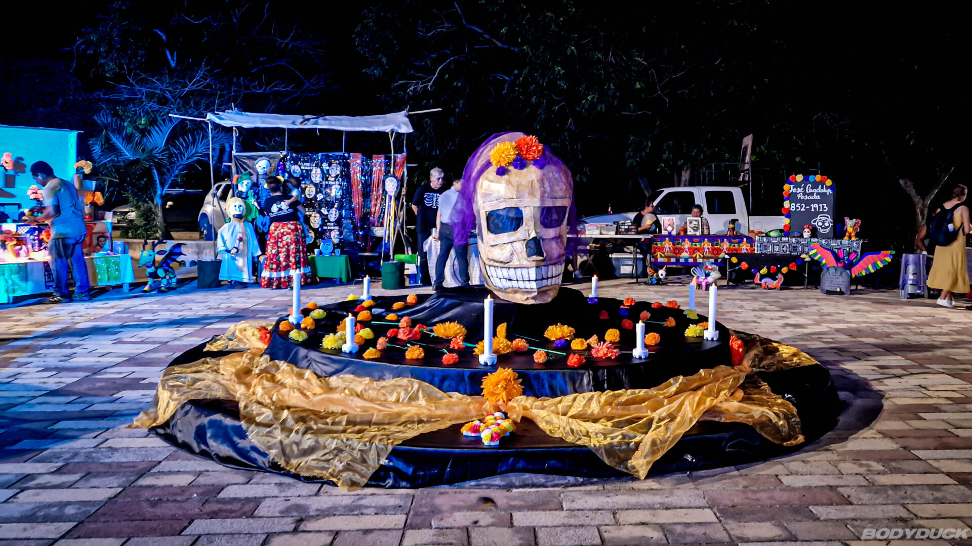 Überall begegnet man den Calaveras (Schädeln) und Calacas (Skeletten). Ob aus Zucker, Schokolade oder als kunstvolle Figuren – sie sind bunt und fröhlich gestaltet. Sie symbolisieren, dass der Tod nichts Schrecken erregendes sein muss, sondern mit Respekt und Humor betrachtet werden kann. Besonders die Figur der La Catrina ist zum weltweiten Symbol für diesen respektvollen Umgang mit der Endlichkeit geworden.