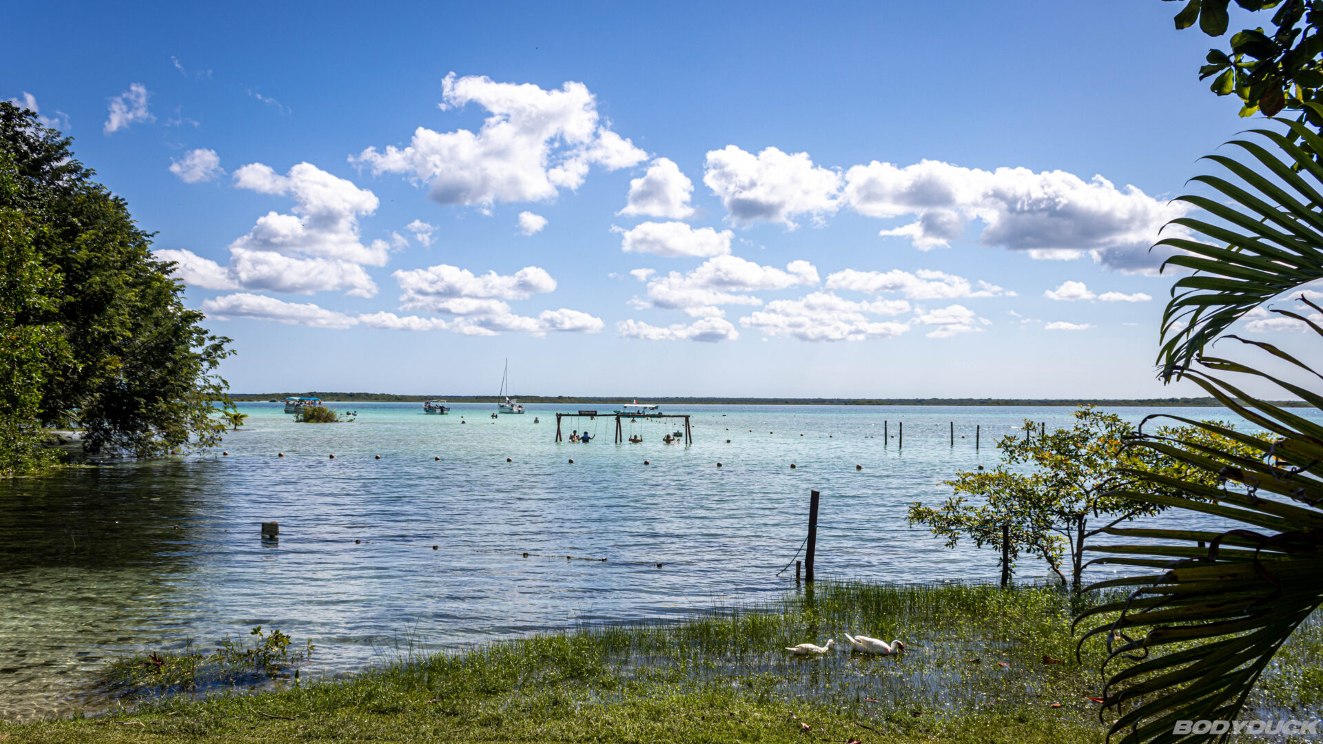 Heute steht die Gemeinschaft im Mittelpunkt. Alle, die noch hiergeblieben sind, machen sich gemeinsam auf den Weg zur Laguna de Bacalar. Wir verbringen den gesamten Tag am Ufer, geniessen das erfrischende Bad im kristallklaren Wasser und breiten unsere Picknickdecken aus. Es ist ein Tag voller Lachen, Entspannung und guter Gespräche, während wir die einzigartigen Farben der Lagune bewundern.