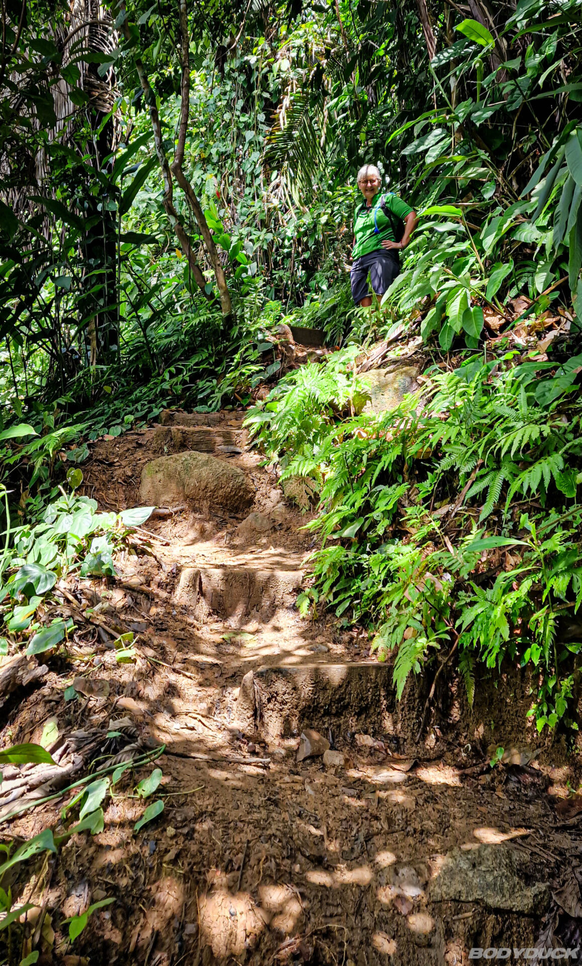 Am ersten Tag sortierten sich die Variablen noch zu unseren Gunsten, als wir zu den Upper Bocawina Waterfalls liefen. Doch am nächsten Tag forderte das System uns heraus: Wir nahmen den Antelope Pass in Angriff. Der Boden war aufgeweicht, Wasserlachen mussten überwunden werden – ein Szenario, das der „wehleidige“ Teil in mir eigentlich strikt ablehnt. Dennoch trotzten wir dem Matsch und genossen es paradoxerweise, durch den Regenwald zu laufen. Beim Aufstieg zum Antelope Falls mussten wir jedoch kapitulieren; rutschige Felsabschnitte waren eine Variable, die kurz vor dem Ziel die Umkehr erzwang.