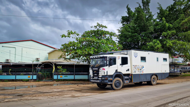 Wir steuern direkt das viel beschriebene Farmers Trading Center an. Und tatsächlich: Es ist ein so geordneter und gut ausgestatteter Einkaufsladen, wie wir ihn schon lange nicht mehr erlebt haben. Es ist dieser Moment, in dem das System plötzlich wieder eine Berechenbarkeit ausstrahlt, die fast schon ungewohnt wirkt. Nach dem Einkauf ziehen wir uns zum Countryside Park an den See zurück. Die Parkanlage ist wunderschön gestaltet, mit Palapas, Grills und Wasseranschlüssen – doch die Zufahrt war ein kleines Abenteuer für sich, als wir uns zwischen eng stehenden Bäumen und tiefhängenden Ästen hindurchschlängeln mussten.