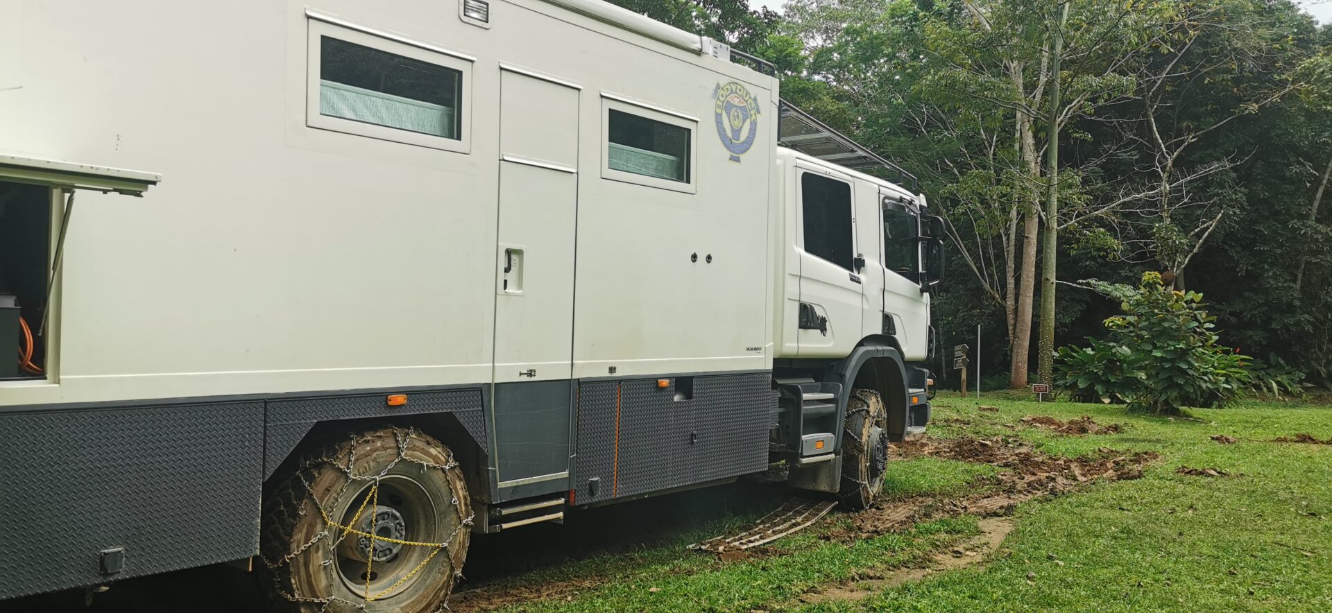 Morgens weckte uns das System mit dem Gesang zahlreicher Vögel, untermalt vom fernen Ruf der Brüllaffen. Sogar Jaguare sollen hier als seltene Variablen existieren, auch wenn sie sich uns nicht zeigten. Doch die wahre Prüfung kam nach drei Tagen Dauerregen: Der Boden war so aufgeweicht, dass unser persönliches Transportsystem, der Bodyduck, im Matsch zu versinken drohte. Dass wir uns am Ende mit Mühe und Not – und unter Einsatz von allen vier Schneeketten mitten im Regenwald – aus dem Schlamm befreien mussten, beweist: Unser Leben ist kein langweiliger Zeitstrahl, sondern ein Tornado, der uns manchmal dazu zwingt, im Matsch über uns hinauszuwachsen.