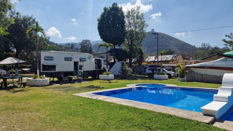 Nach einem intensiven Aufenthalt mit zwei Wochen Spanischunterricht, farbenfrohen Prozessionen und wertvoller Zeit mit Reisefreunden verlassen wir Antigua. Das System „Lernen & Kultur“ wird nun wieder gegen „Fahren & Entdecken“ getauscht. Der Weg führt uns mitten durch den monströsen Verkehr von Guatemala City – eine logistische Geduldsprobe, die uns einiges abverlangt. Nach insgesamt 5 1/2 Stunden Fahrt erreichen wir schliesslich unser Ziel in der Nähe von Zacapa.