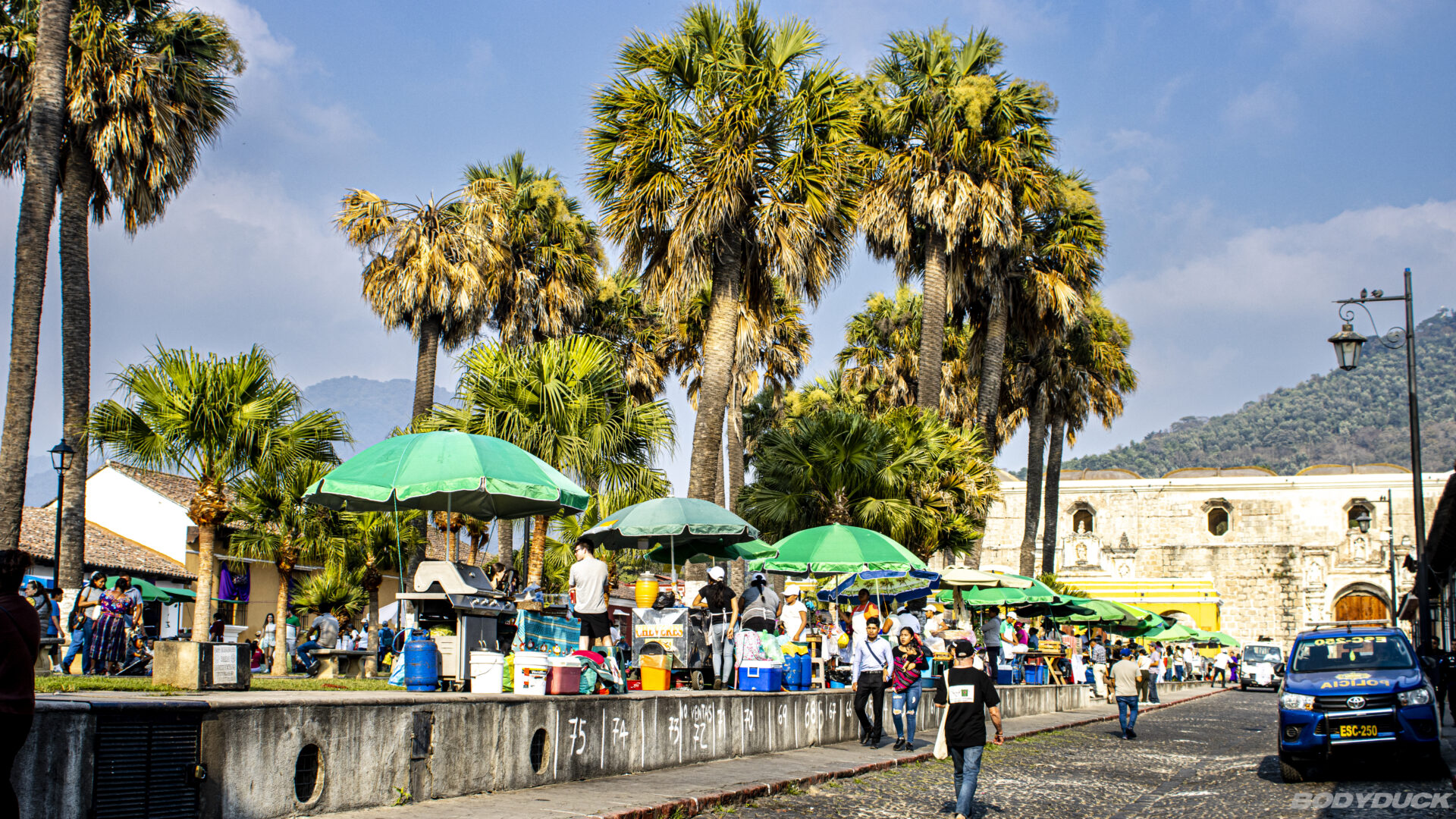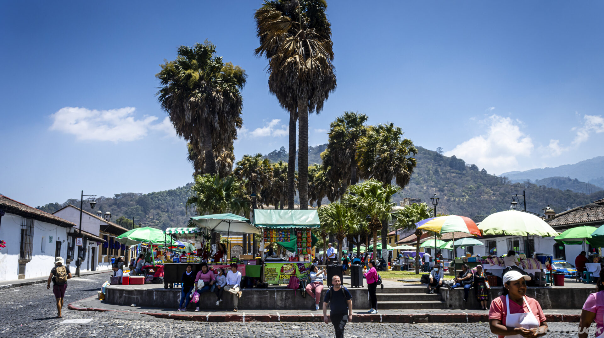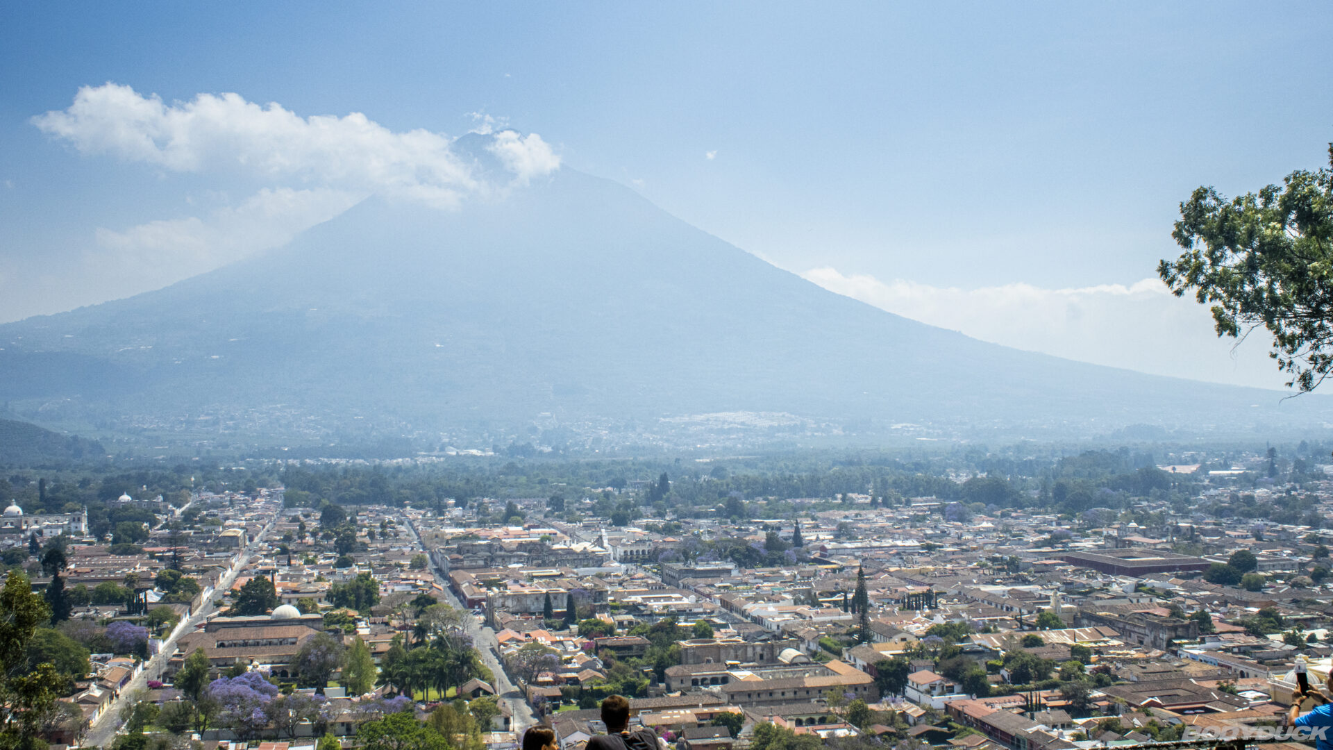 Heute steht die vertikale Perspektive auf dem Plan. Wir spazieren durch die Gassen von Antigua und laufen hoch zum Cerro de La Cruz. Der Aufstieg wird mit einem majestätischen Ausblick belohnt, der sich über die gesamte Stadt eröffnet. Das Panorama ist ein strategischer Volltreffer: Direkt dahinter erhebt sich der Volcán de Agua, dessen Gipfel heute die perfekte Kulisse bildet. Ein beeindruckendes Zusammenspiel aus kolonialer Architektur und vulkanischer Urkraft.