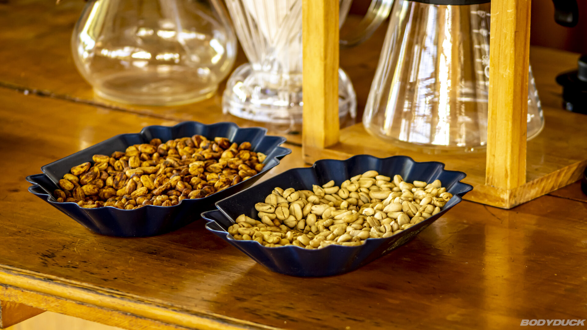 - Gewaschen & Heissluft: Diese Bohnen wurden fermentiert, gewaschen und per Heissluft getrocknet. Nach der 3-Minuten-Röstung war dieser Kaffee deutlich säuerlicher und bitterer, aber dennoch sehr fruchtaromatisch.