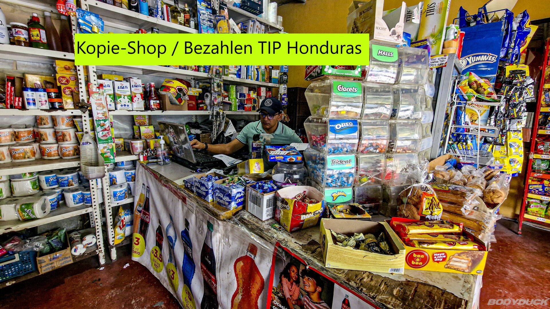 -7. Im Zollhof, im gleichen Kopie-Shop geben wir die Rechnung ab und bezahlen 290.00 Quetzales. Mit der Quittung zurück zum honduranischen Zollbeamten daraufhin erhalten wir den TIP und die Belege.