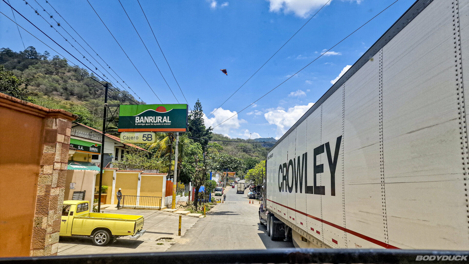 Nach dem unfreiwilligen Boxenstopp ist das Fahrgefühl wieder ein ganz anderes. Es ist beruhigend zu wissen, dass die Basis des Bodyduck nun wieder auf frischem Gummi steht, bevor wir uns in den Stadtverkehr von Guatemala City stürzen. Die Kosten für die vier Neureifen verbuchen wir unter „notwendige Systempflege“. Passt schon, Hauptsache die Fuhre rollt wieder sicher und stabil Richtung nächstes Ziel.